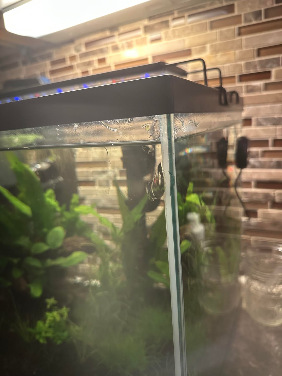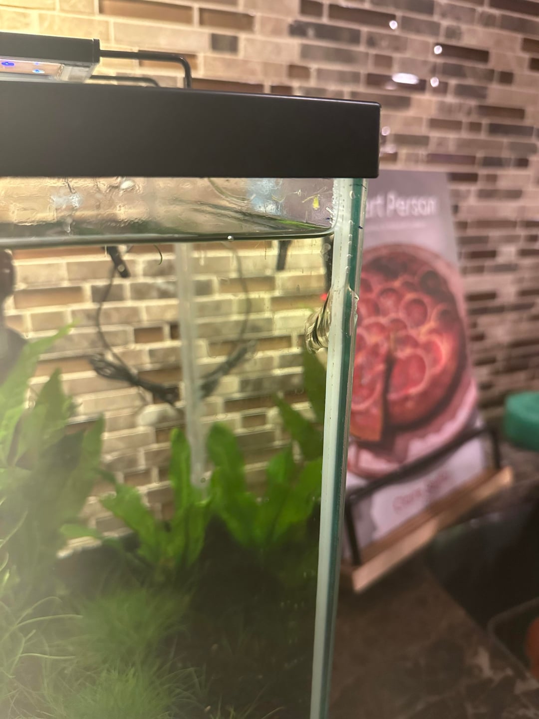 Husband dinged our 10 gallon tank with the edge of a pan tonight and chipped the edge. The seal isn’t exposed to the air and it doesn’t have any fissures coming off it. I’m going to pick up another tank tomorrow. Just super worried since it is on the seal!! 🥹🥹