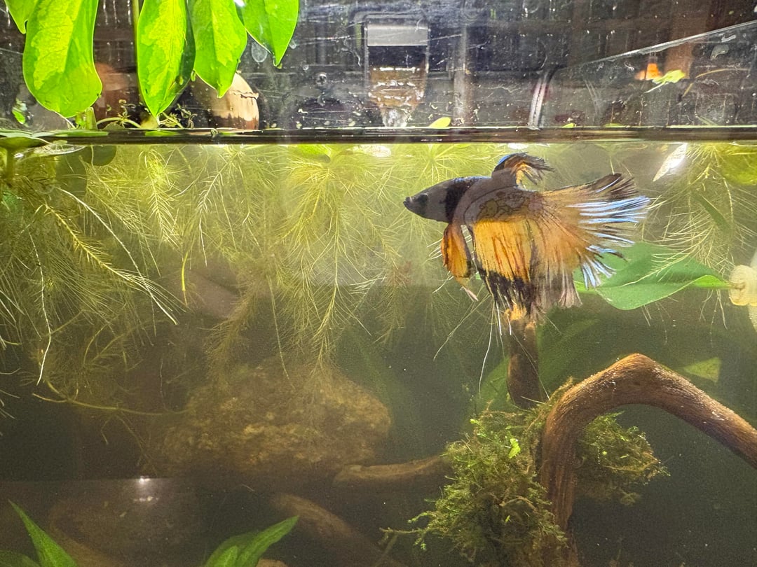 first photo is from 9/14/25 and second is today 1/4/26. i got him surrendered from pet smart (no charge). it’s been a long journey but this little guy is finally healed almost all the way. i never thought the issue would be his fins were TOO big that i had to move him to a smaller tank that was easier for him to swim in (he’s in a 5 gallon moved from a 10 gallon now)