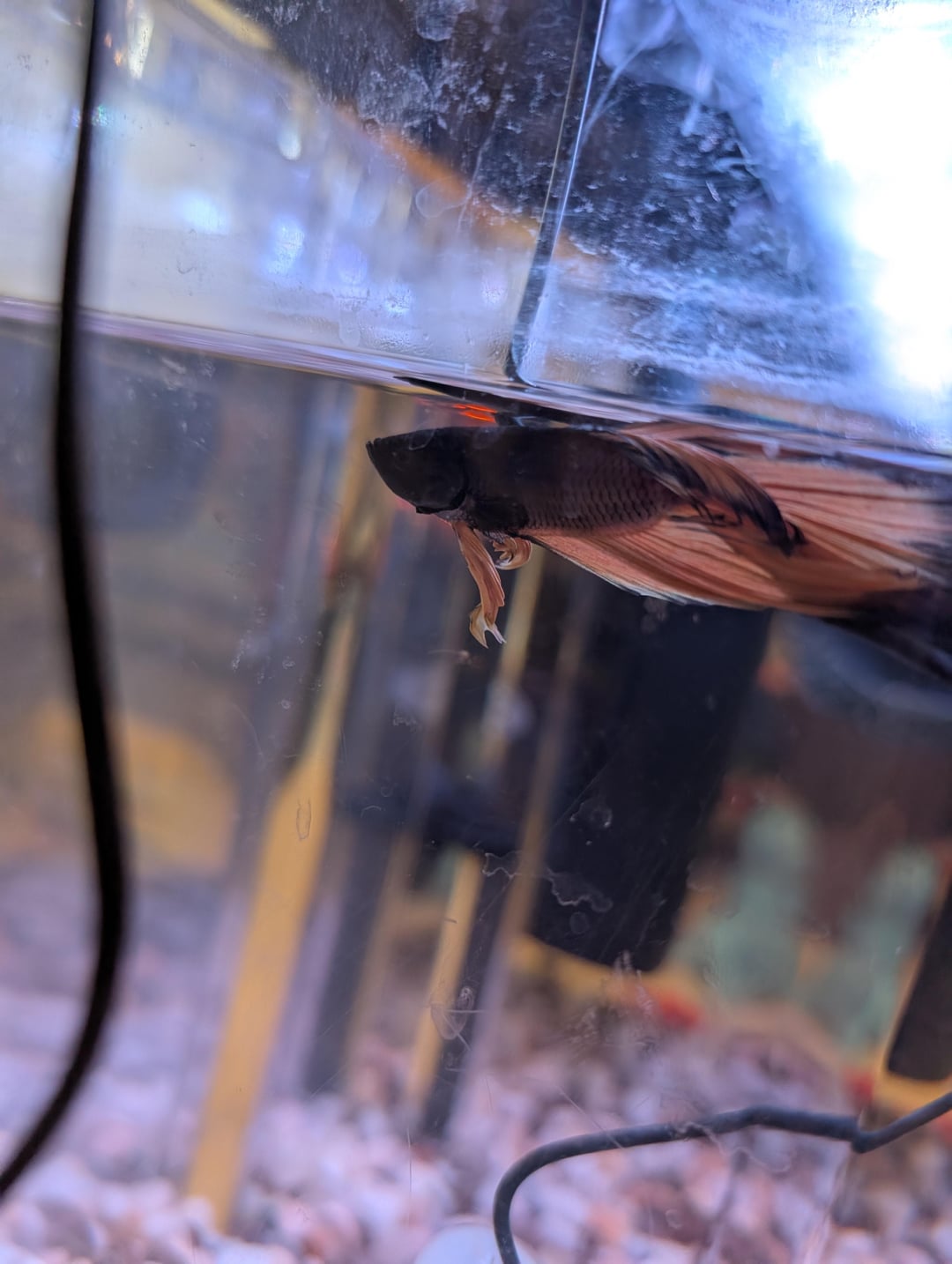 Got this guy for Christmas and came downstairs today and he's just been chilling at the top of the tank. Not really doing too much. He wanted to eat a little bit but he hasn't really moved too much. Today my tank dropped down to 76 and a half today when I came downstairs so I turned the heater up a little bit. It got really cold outside last night so I don't know if that might be stressing him out or not. If there's any help please help.