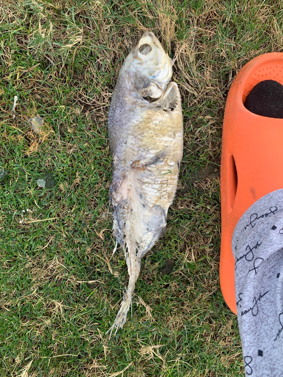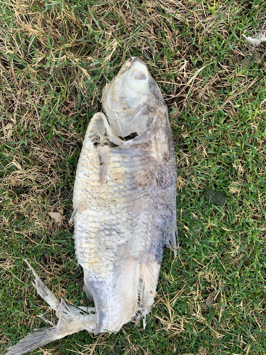 I know this is a bass fishing subreddit; however, im having a hard time fishing this pond and I notice this dead fish. If it is a threadfin shad, maybe it can help me narrow down where I need to fish at and what to throw.