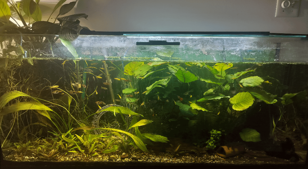 I have a planted 55 gallon tank (with the water level it's more like 45 probably) I was wondering if I could add 1 male and 2 female opaline gouramis, a couple or just one. There's currently 8 Harlequins, guppies and one bristle nose.
