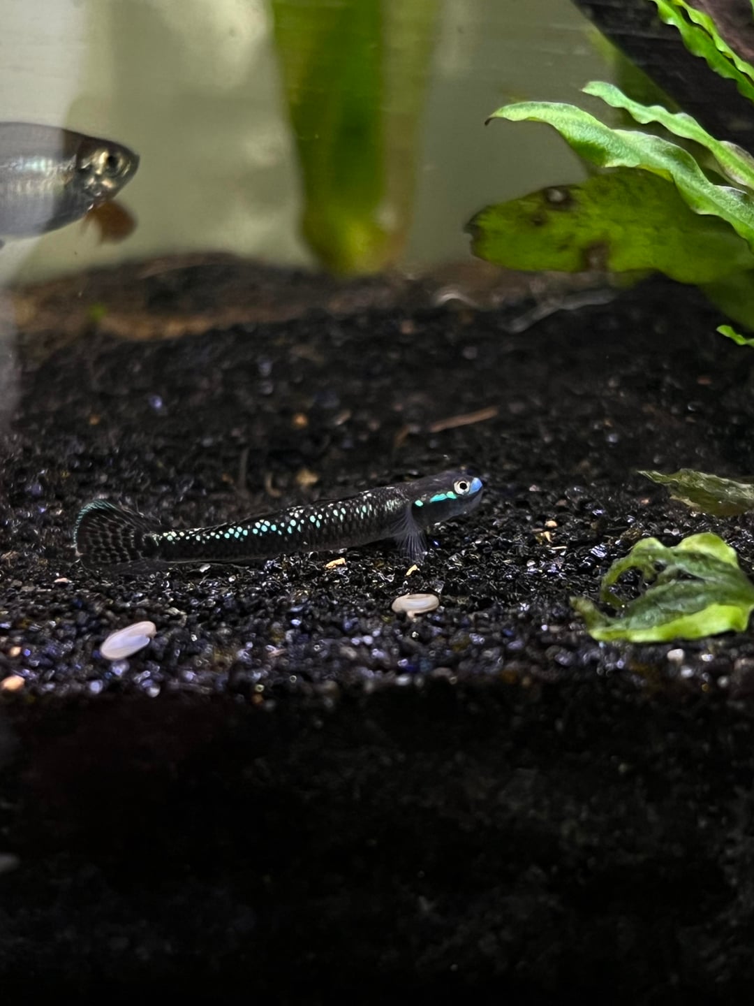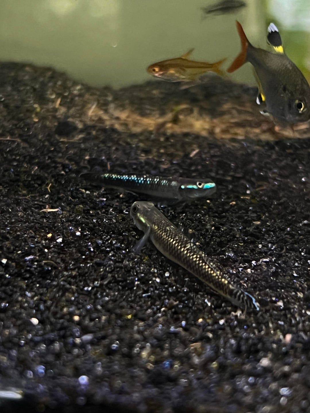 Male blue neon goby is in dark mode all week. Are the other 2 pictured both females? They are 1 year old in my aquarium. Seemingly thriving Posted by George-the-dood