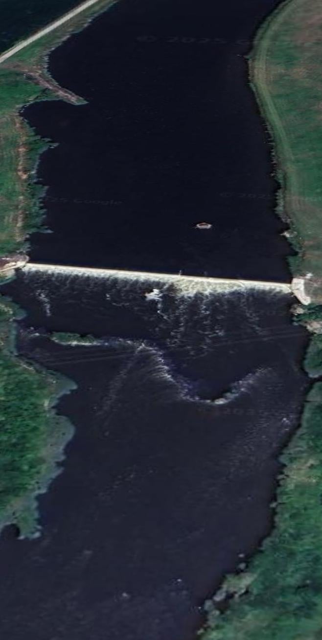I can’t tell in the photo how deep it is, but if any of those points just below the dam or deep or even a deeper section a little bit down, chances are there is a big one chilling there waiting for food to swept to it