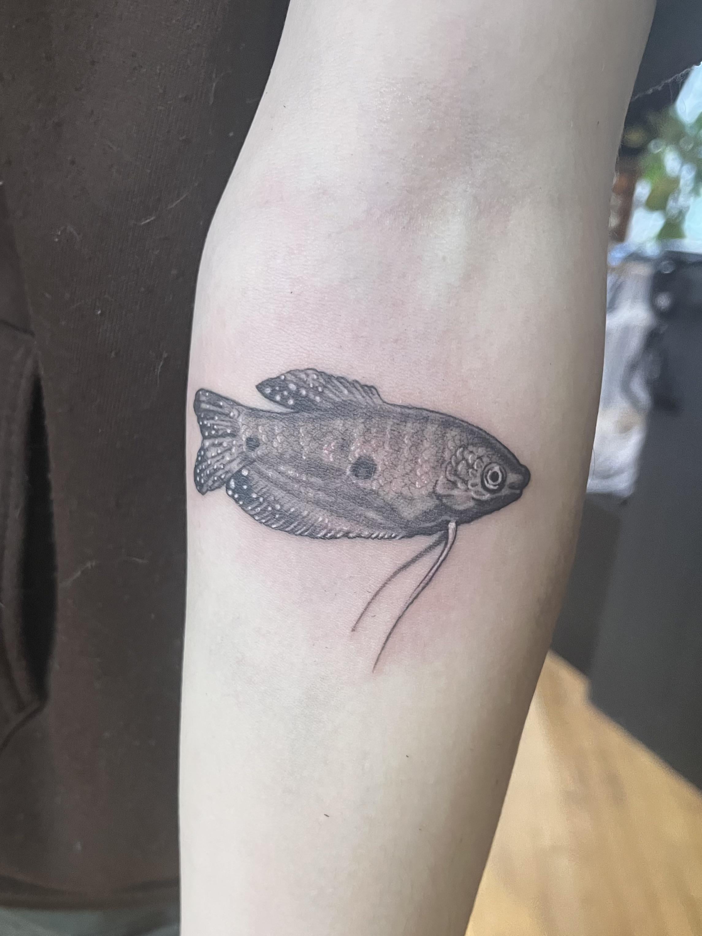 I haven’t seen any gourami tattoos, so I thought Id post this!! His name was…Seth Rogan 😌 Posted by DejDas