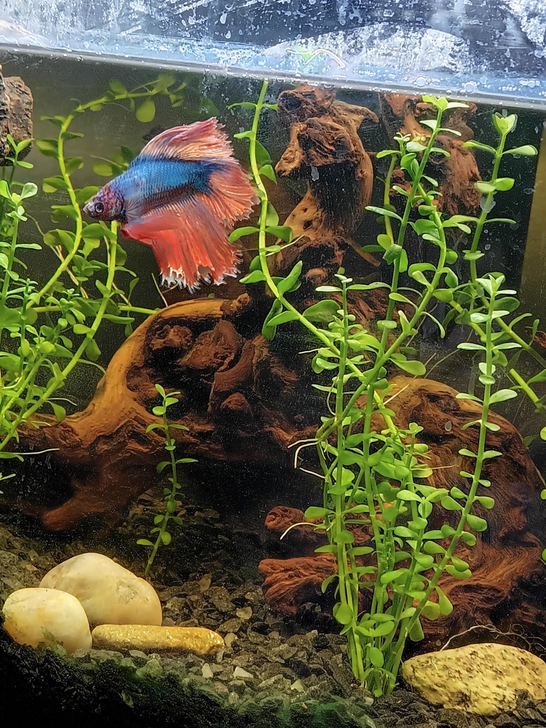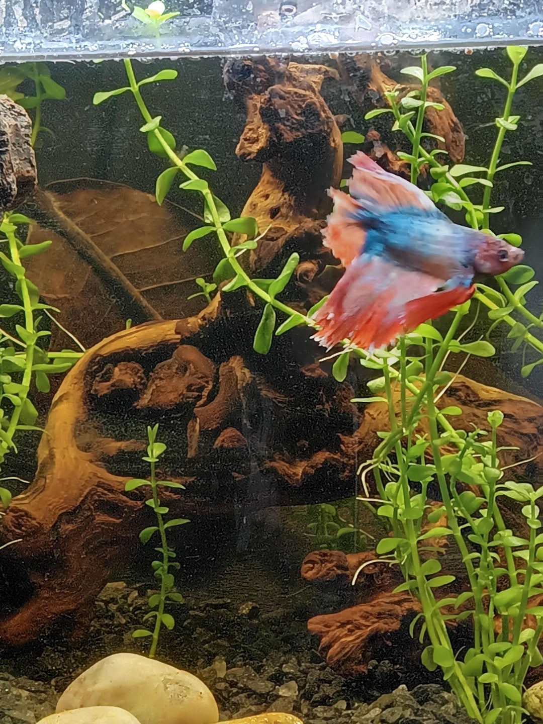 Can someone please tell me if I'm doing something wrong, his fins aren't growing back and he seems like his scales rubbed off or he's losing color. I been doing salt baths every weekly water change and adding tannins into his water to promote growth but I'm seeing no improvement. His temperature is at 80°, filter on low, feed with the highest recommended food and has clean gravel. He eats well and loves to zoom around the tank but I want him to get physically better