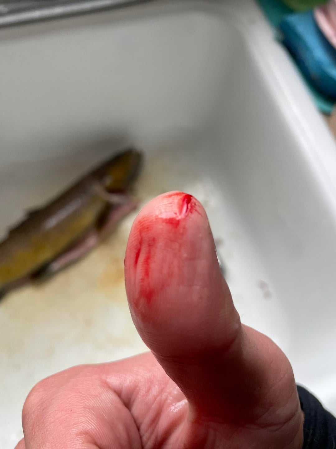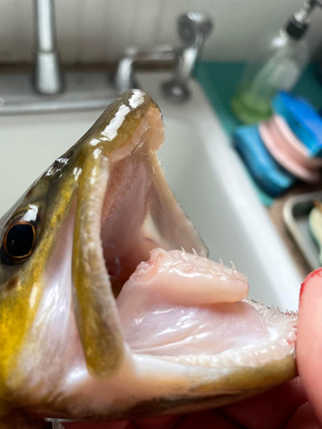 Always forget about the little tongue teeth. He bit me so I bit him.