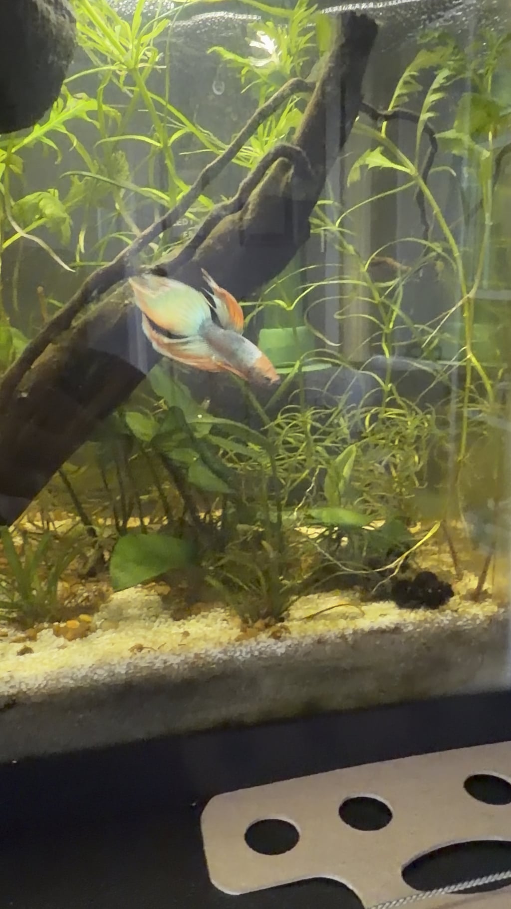 Ideally I would rather keep him in my ten gallon since my other option is a 6 gallon shrimp tank. It’s not been fully cycled yet and I have about until Sunday until I’ll be done dosing seed. The parameters for that tank are 7.6 pH, ammonia is 0.25 ppm, nitrite is 0.25 ppm, and nitrate is 0.5 ppm. I’m going to do what’s is best for him and I’m not sure if plating my tank more will solve that issue. I have blocked off three sides of the glass with construction paper in case it’s his reflection that scaring him but my assumption is it’s the tank mates. I’ve kept my other betta with tankmates in the past and he was fine, however different bettas have different temperaments.