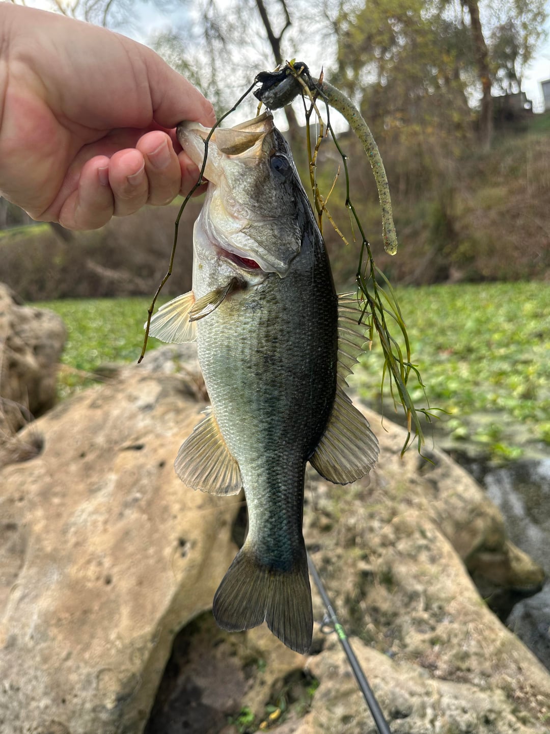 Warm January weather meant a trip to my local river to mess with the resident native bass. Largemouth and Guadalupes were active and hungry. All caught on a Texas rig, homebrew straight tail worm. So far, so good, 2026! Posted by Ok_Fall_9569