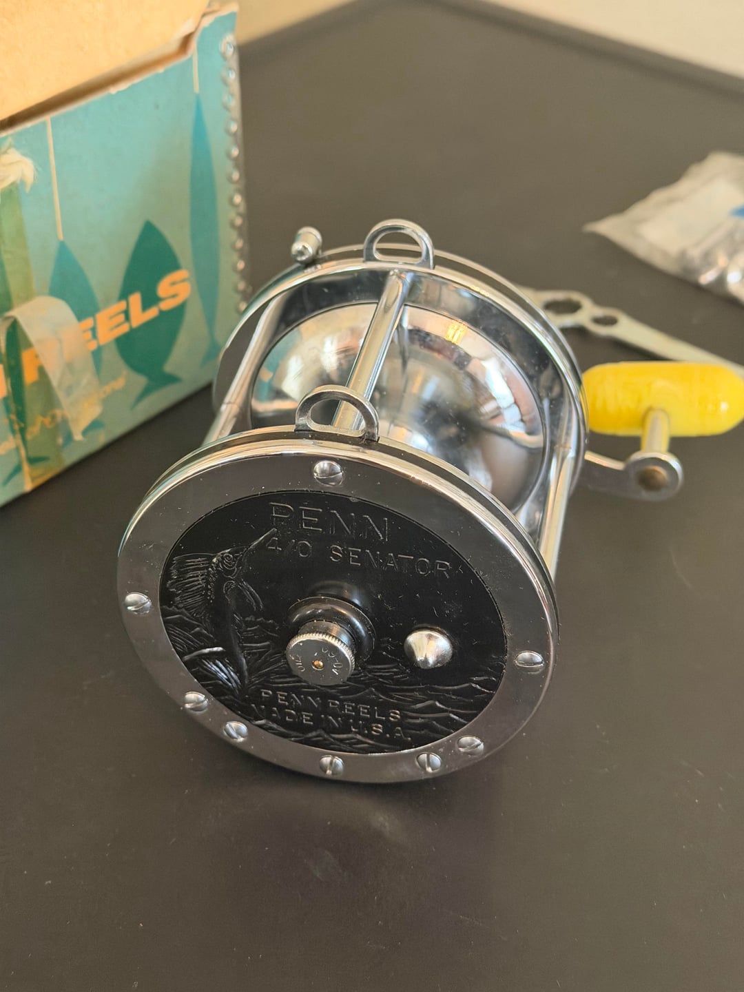 I’ve got a 1976 Penn 4/0 reel with original box, original manual, lube, parts bag unopened, for sale. This apparently (grandad no longer alive, so based on no obvious wear and tear) unused half-century old beauty (see pictures) should be on display or put to good use by someone that appreciates vintage quality. I’m a fly fisherman mainly, so it’s not a reel I’ll put through the paces – but someone should! Based on pricing it out I gather in this condition it’s worth some $200 not including shipping. Taking offers.
