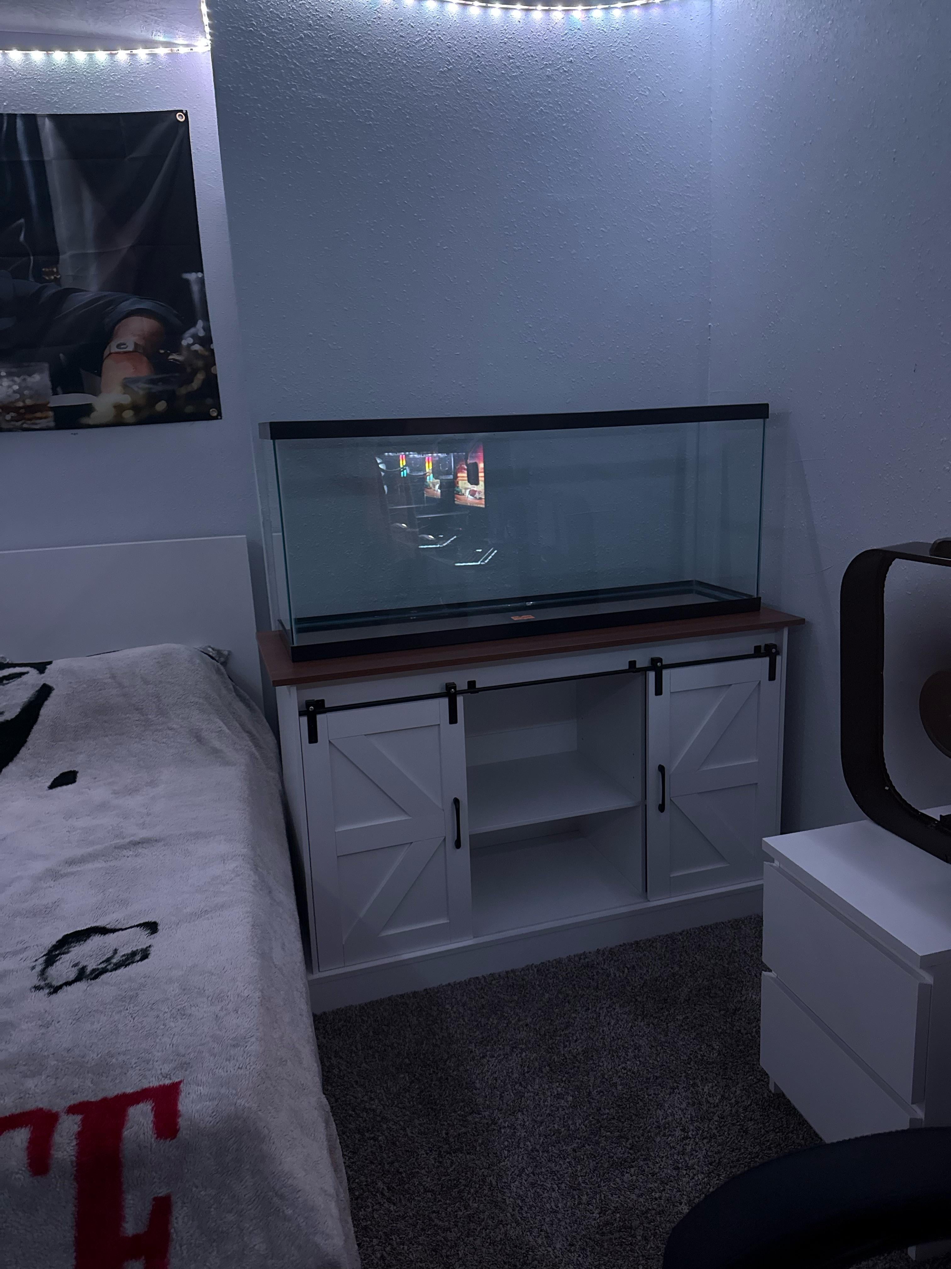 1. That is awesome, fits so nice. Update us when you have it established! For decorations try to go for as natural as possible. No colors. Sand or pea gravel. I typically buy mine from Home Depot or similar. Way cheaper than a fish store but you do have to rinse it thoroughly before adding it. I like to collect larger stones from creeks if possible and boil them. Then I stack them to make caves. Driftwood is great too, a bit harder to scavenge but just a couple nice pieces really makes the tank look nice. Some fake plants can add to it as well as long as they look kinda real. A lot of them are junk but some look pretty close to the real thing.