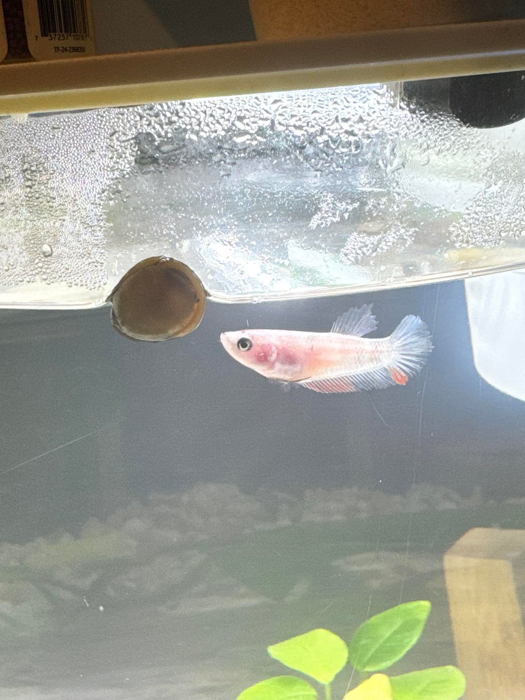 After Ferris passed, I didn't think I would get another but I missed having a fish. I went to the store and noticed all these numbers on the cups. I asked the lady in the store and she said those were dates. I was horrified that one had been in a cup for 6 months! Of course I picked her! This was Thelma on the day we brought her home on November 30. And the second pic was yesterday, January 7th! Isn't she beautiful! Such a happy girl now and shares her tank with a snail named Louise.