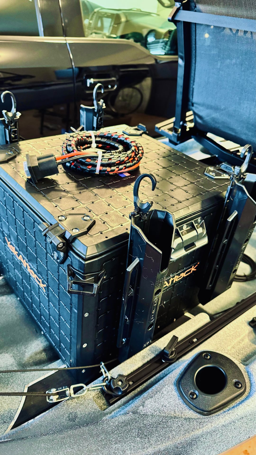 Build out is almost done. All that's left is the electrical connections going inside the black pak and that includes cutting the power leads from the motor almost in half. Right now they reach all the way to the bow handle while the battery is staying behind the seat. Cutting OEM wires, drilling large holes in my black pac…ugh! Any words of advice before the knives come out?