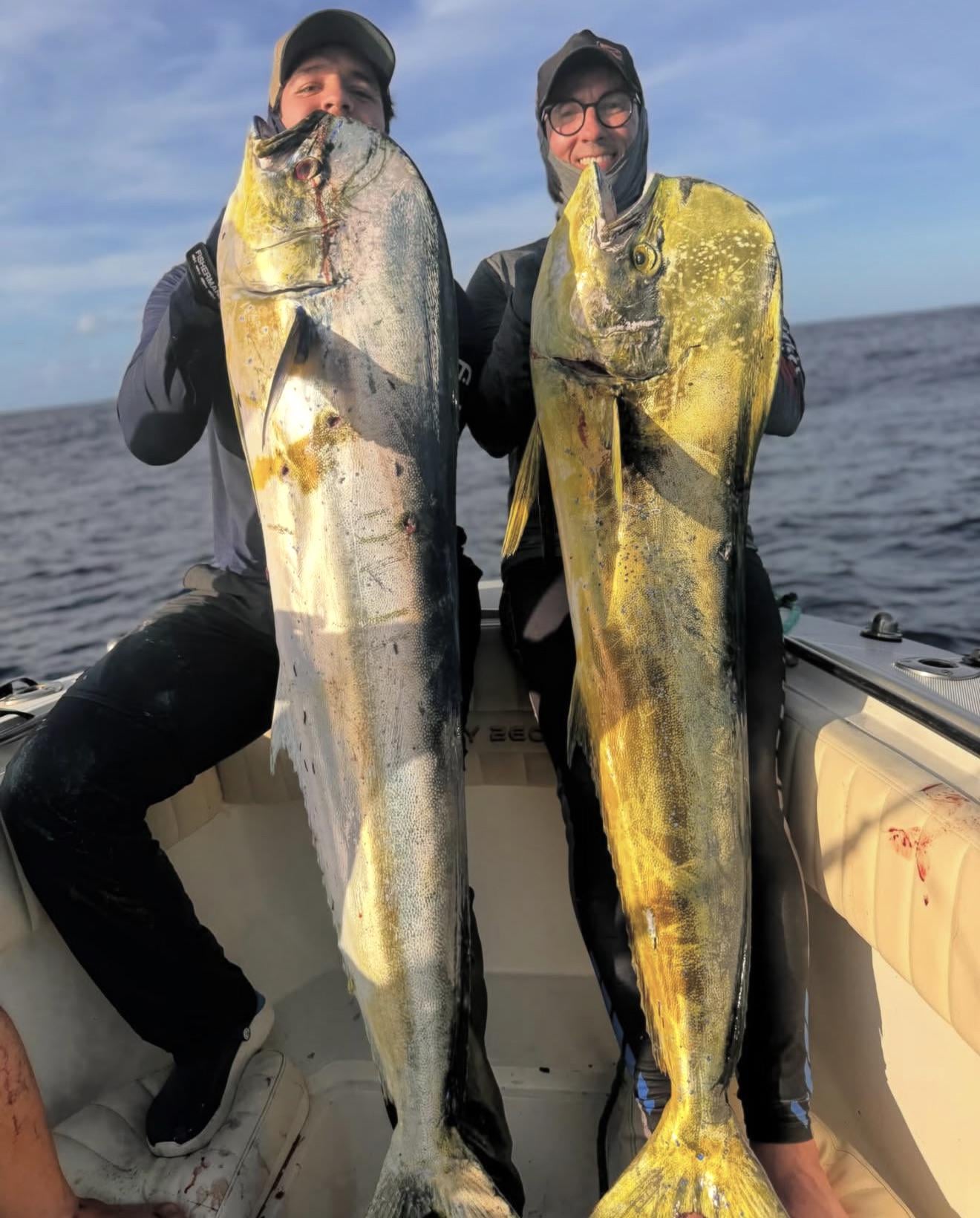 Two of my buddies rocked these giant mahi. They did swim close to the boat, we tossed jigs on them and the craziness was triggered.