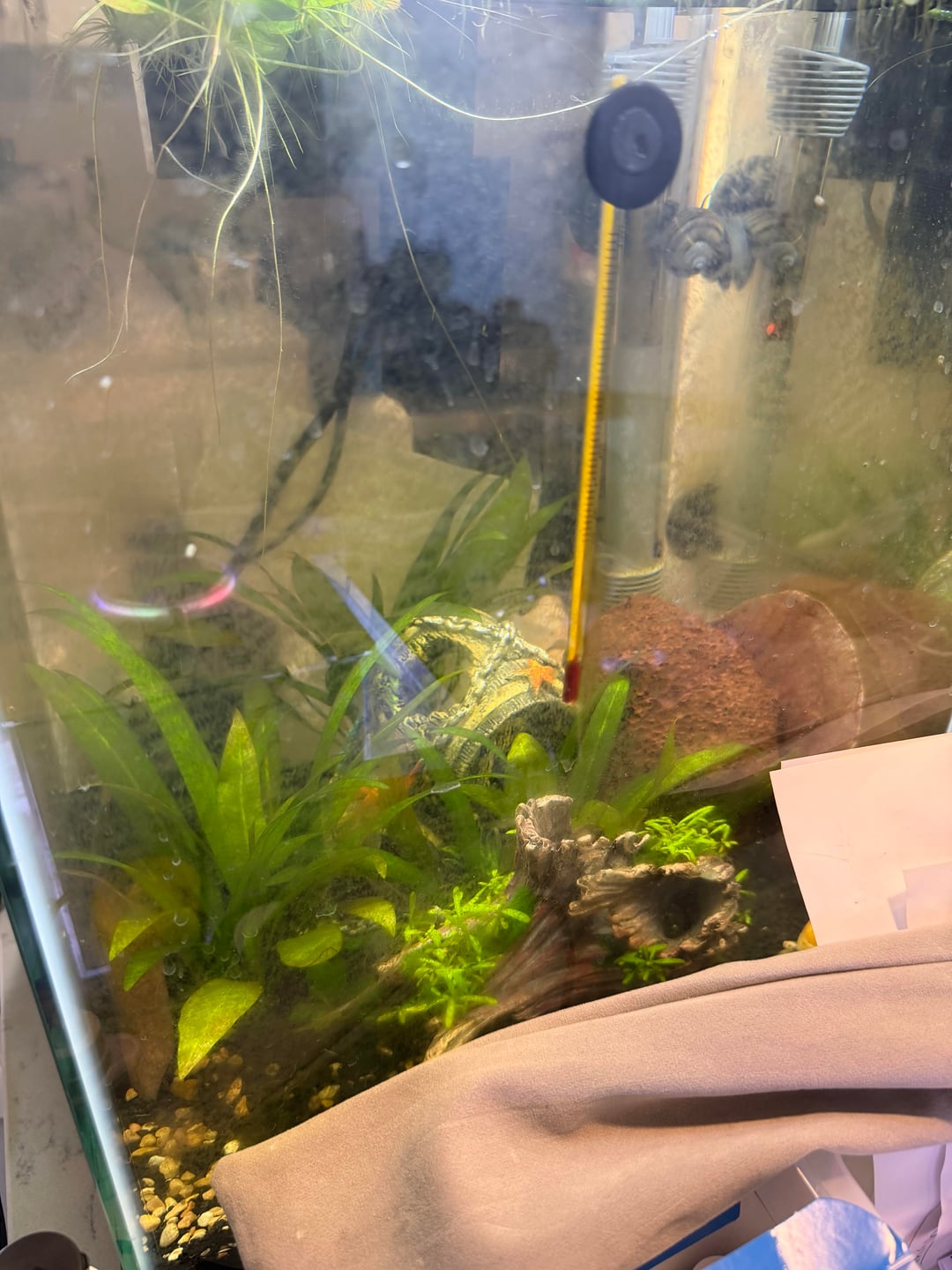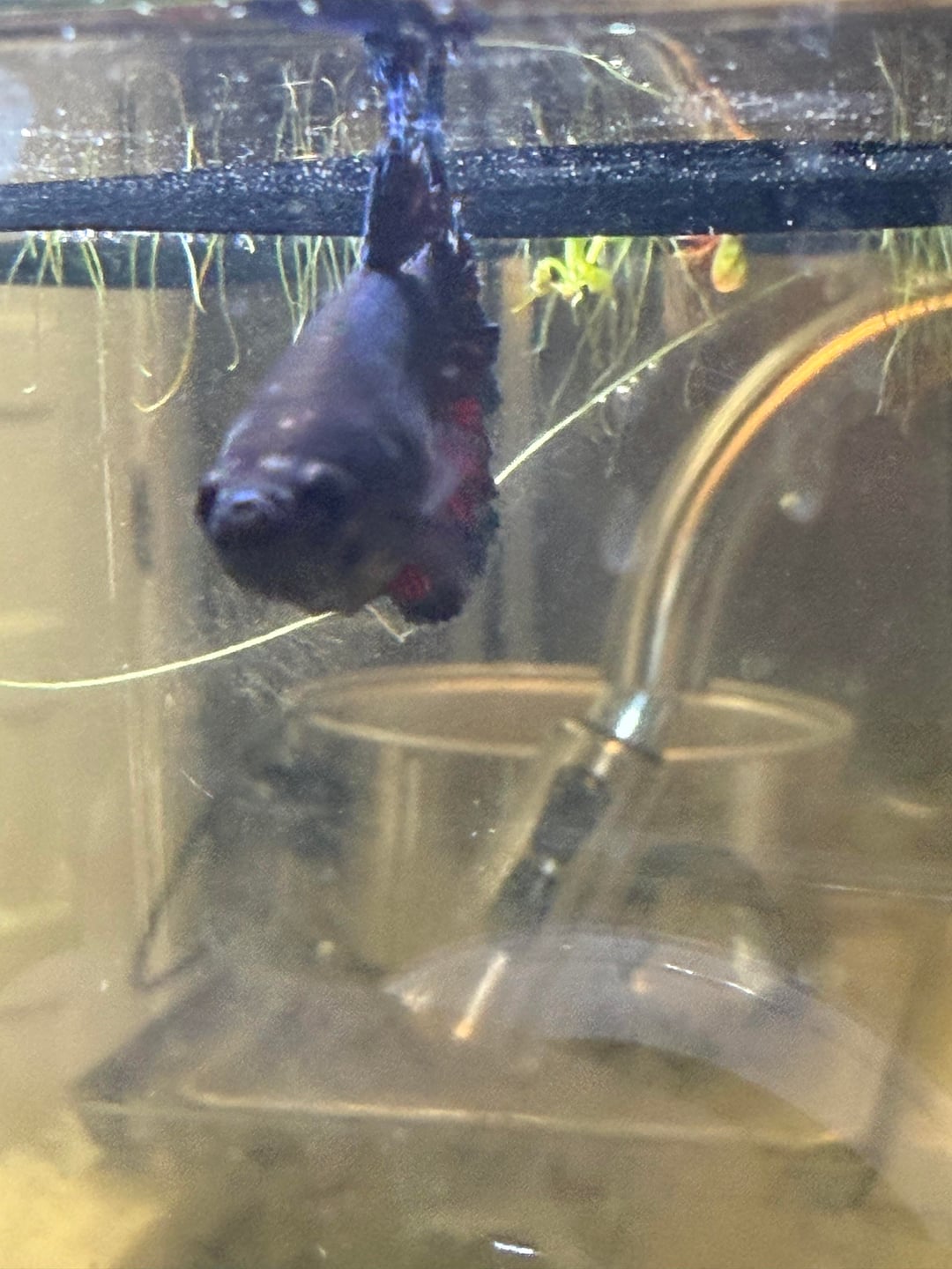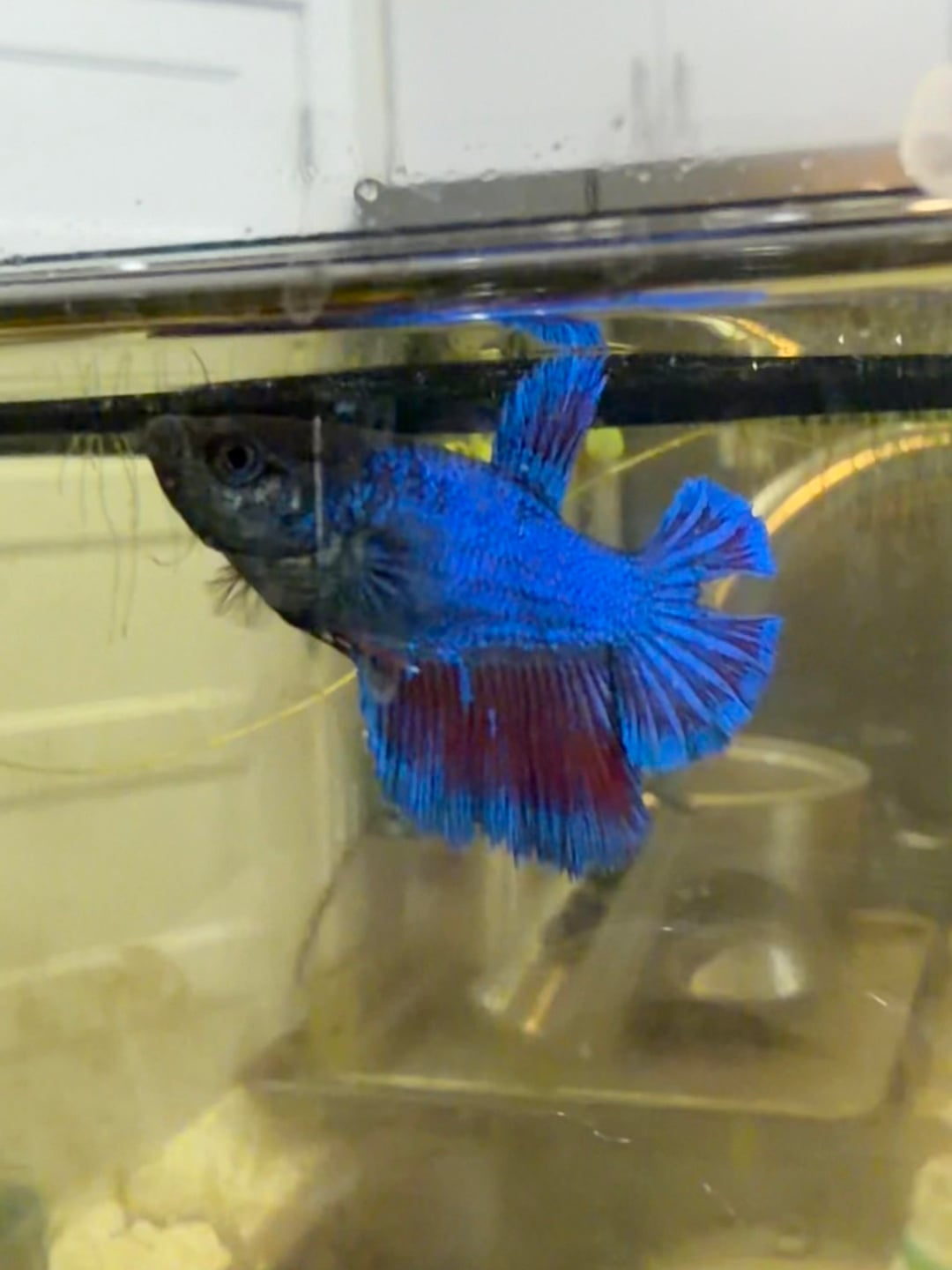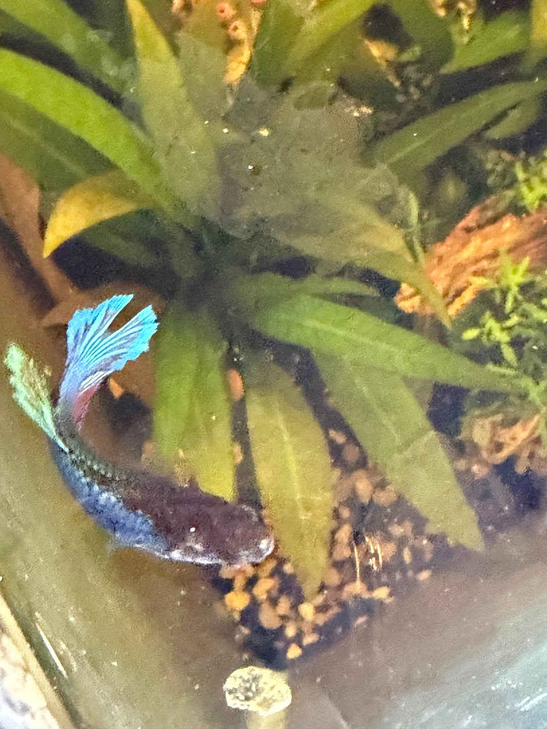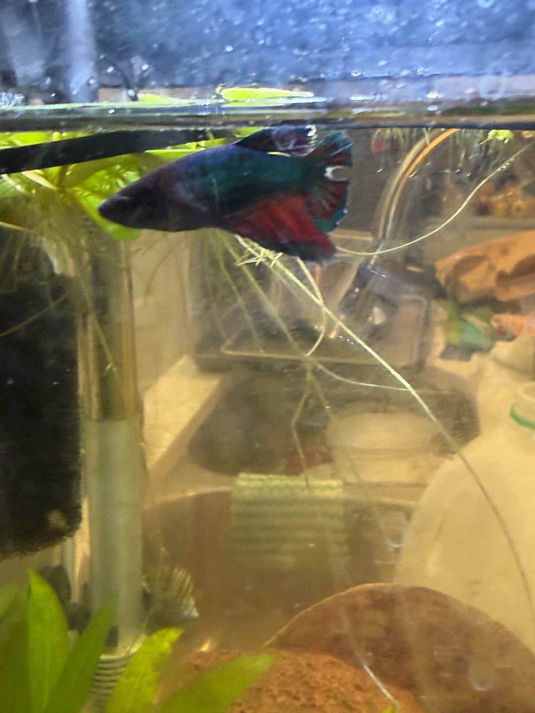 I think she lost her fin because she was rubbed against theses wood that I've taken out anyone have any advice? At one I'm going to go to the pet store to get a filter to put her in a hospital tank
