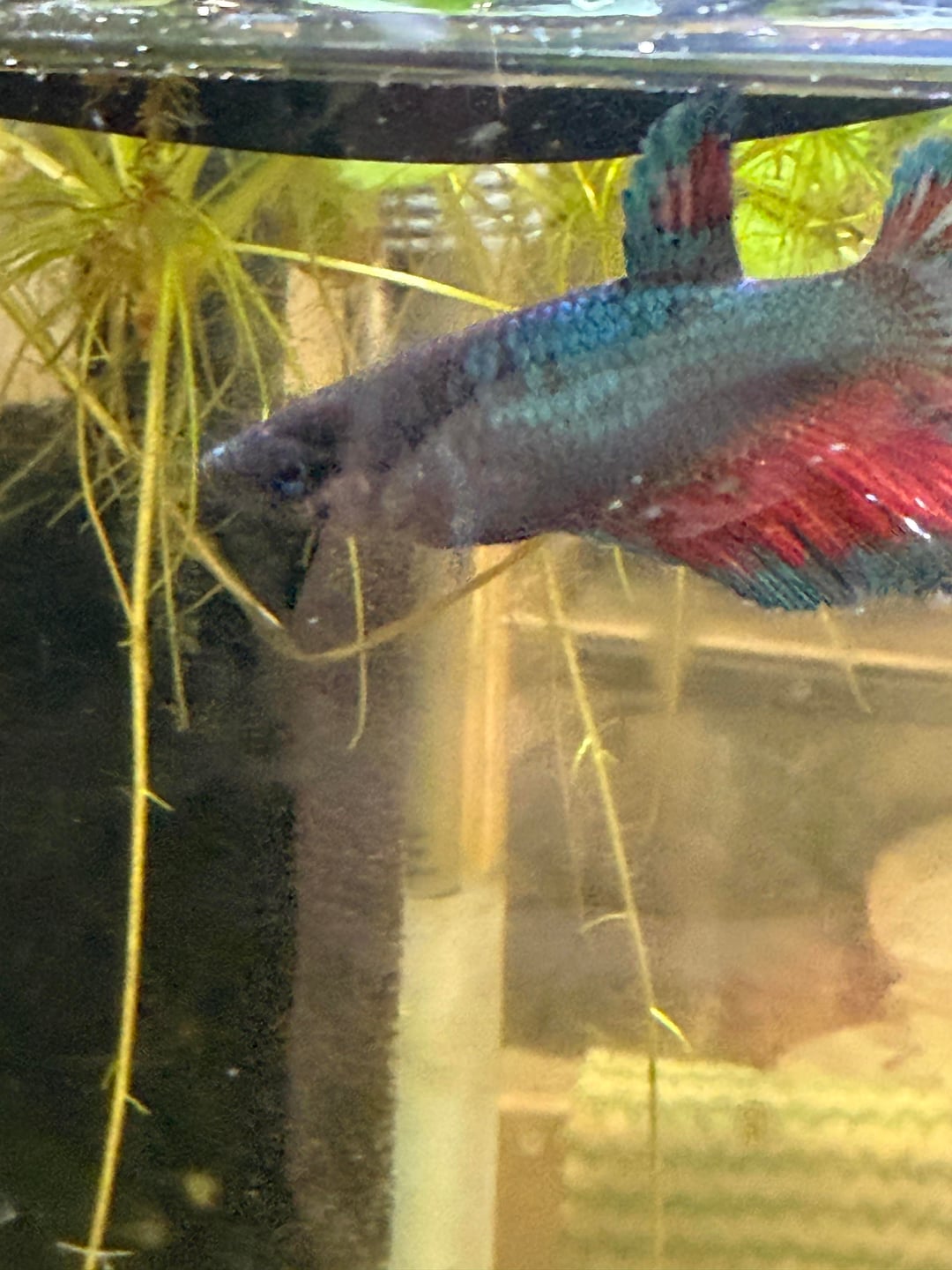 I don't know what is wrong I'm a first time fish owner I have done hours of research I thought I was doing good but a few days ago my betas (young female) fish's back fin fell off I did a water change and I think it's the PH is to high she has wired gray spots on her her fin is healing but the gray spots are getting worse she is in a 10 gallon tank I've put stuff in to lower ph leaves there is 2 amono shrimp and one Cherri shrimp and 2 mystery snails in a 10 gallon tall tank it has plants