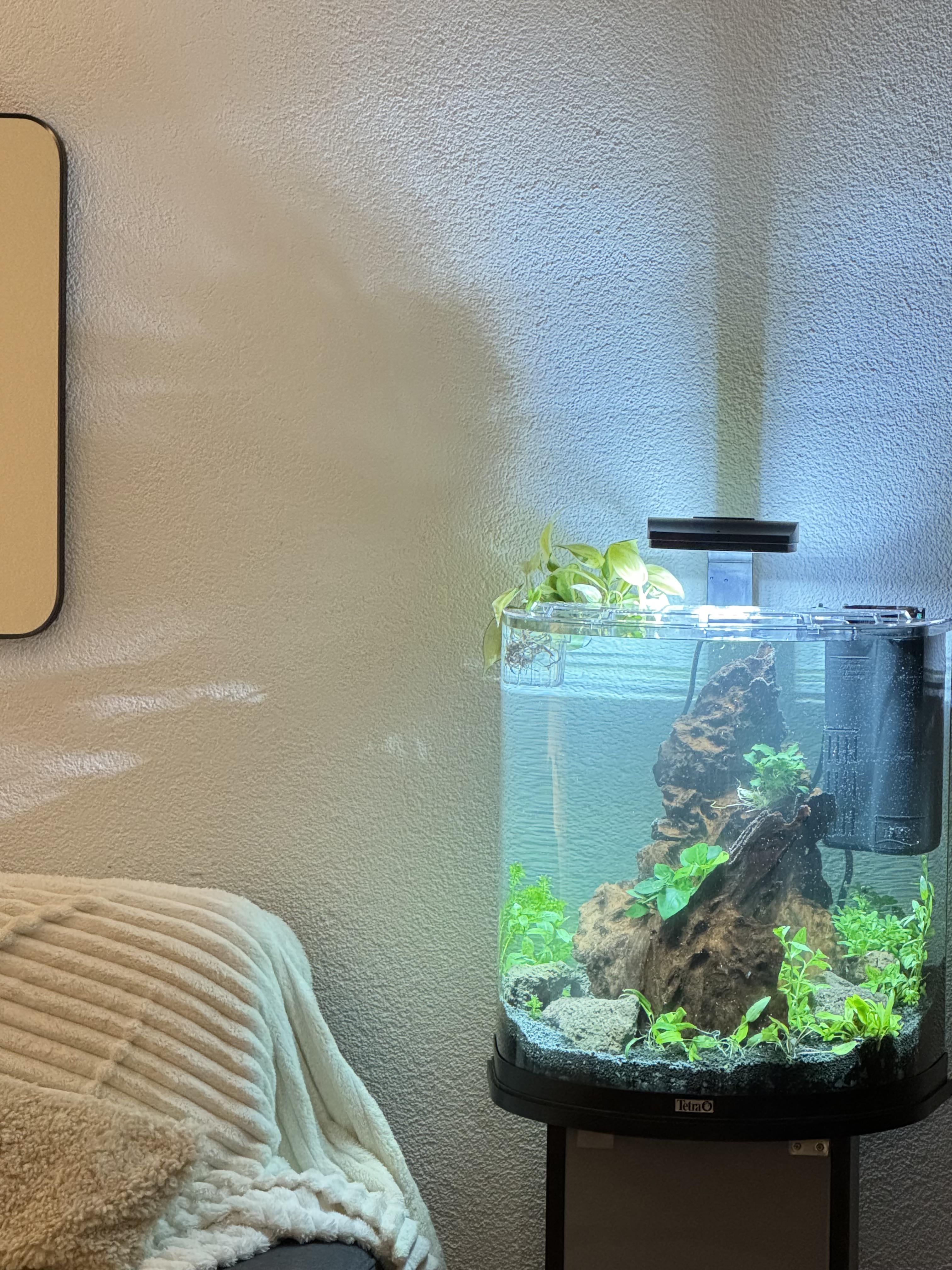 My husband and I just set up this tank. It’s currently cycling, and the plants will grow in a lot more over the next few weeks.