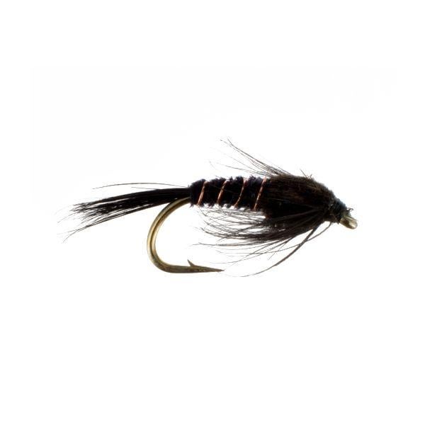 I've been told the way to fish in winter river is to go for the tailwater (near the dam) and also to focus on deeper pockets. I've also been told to go for a double-nymph rig. The guy at the shop last time gave me two small nymphs one that's all black and looks like this and one that's purple and looks like this, so apparently a regular black nymph and purple prince.