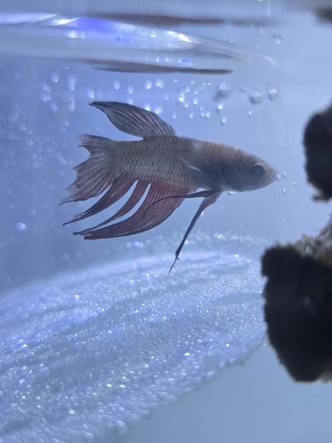 My betta sprinkles has really flourished in a better tank! The first picture is from December 28th and the second is from today. I think I see a major difference in his color and his fins which I was really worried wouldn't grow back but he looks really good! He's a veiltail so I hope to see some more improvement with his tail but for now he looks really happy and I just wanted to share 😀