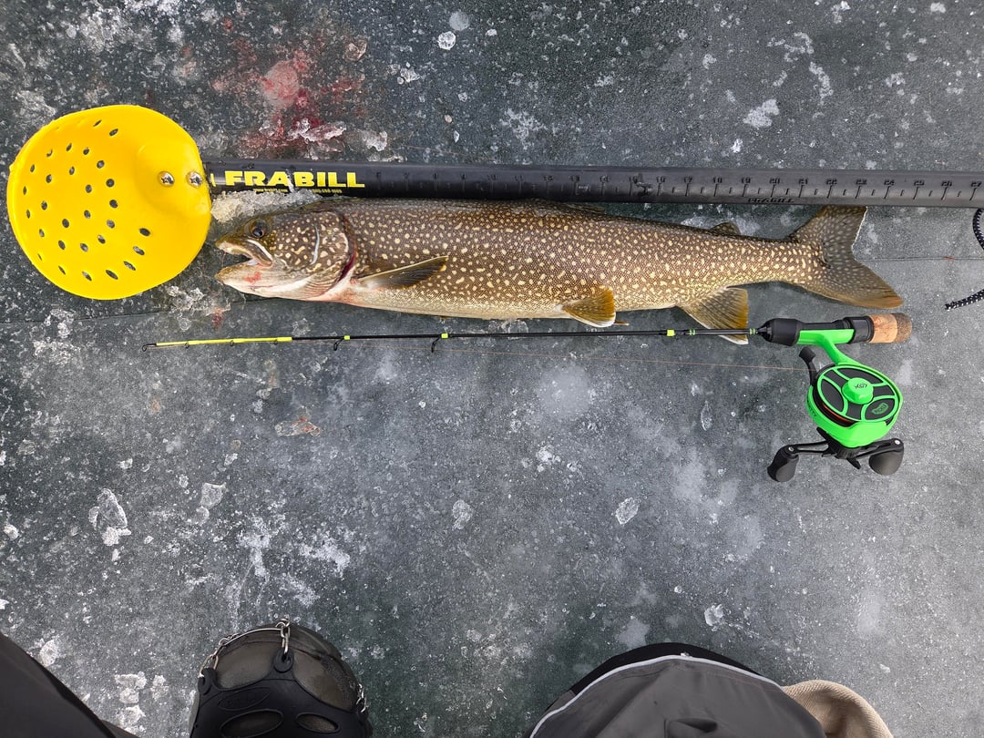 Caught this laker on my perch setup up. 2lb test. 20 minute fight to get topside. Bent the hook on my jig.