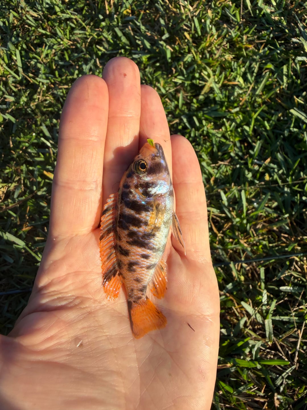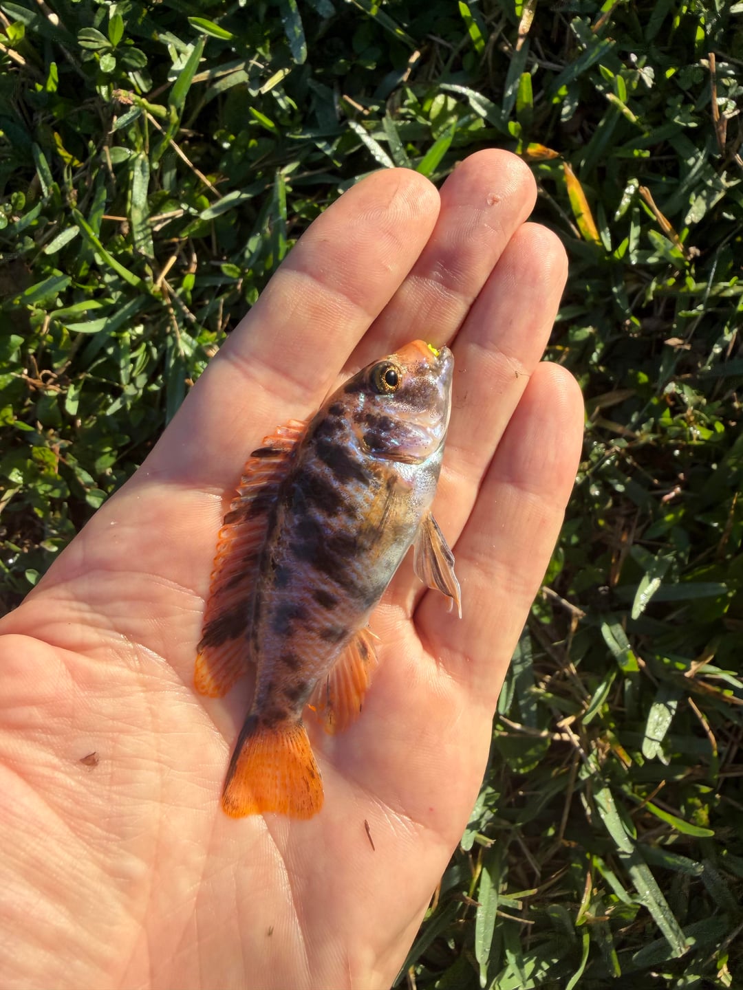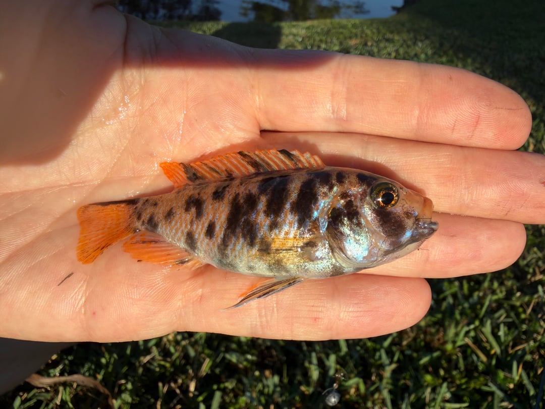 Metriaclima estherae Caught in a park in Florida. I spotted him bullying the other invasives and sight caught it with a little hook and ripped gulp plastic. I put him back and he went right back to being king of the pond Posted by T-Skunked