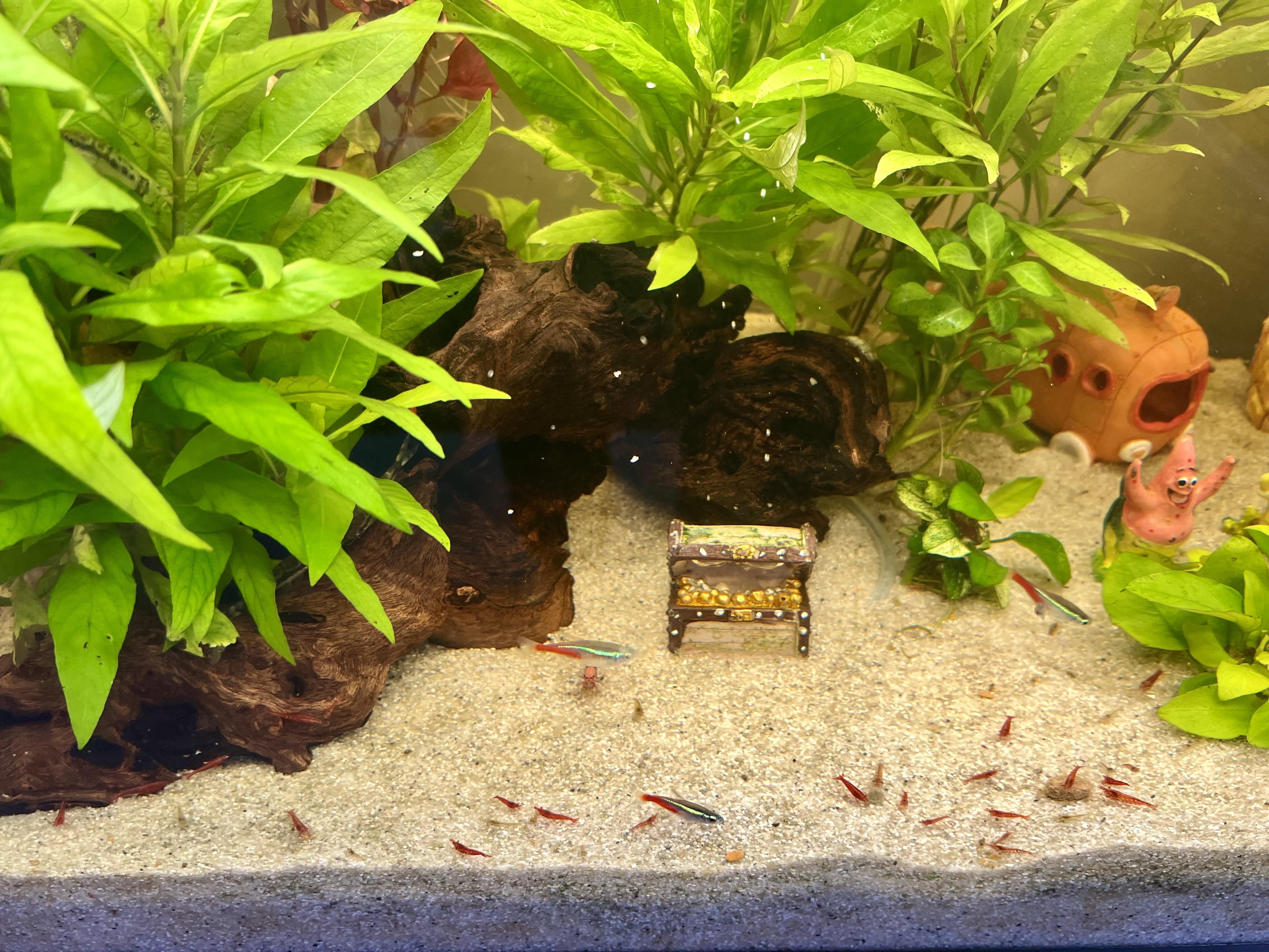 We set up this 125L aquarium back in September for our 6-year-old son. Turns out the shrimp didn’t get the “just a few” memo, because they’re absolutely thriving and reproducing like crazy (~50 now).