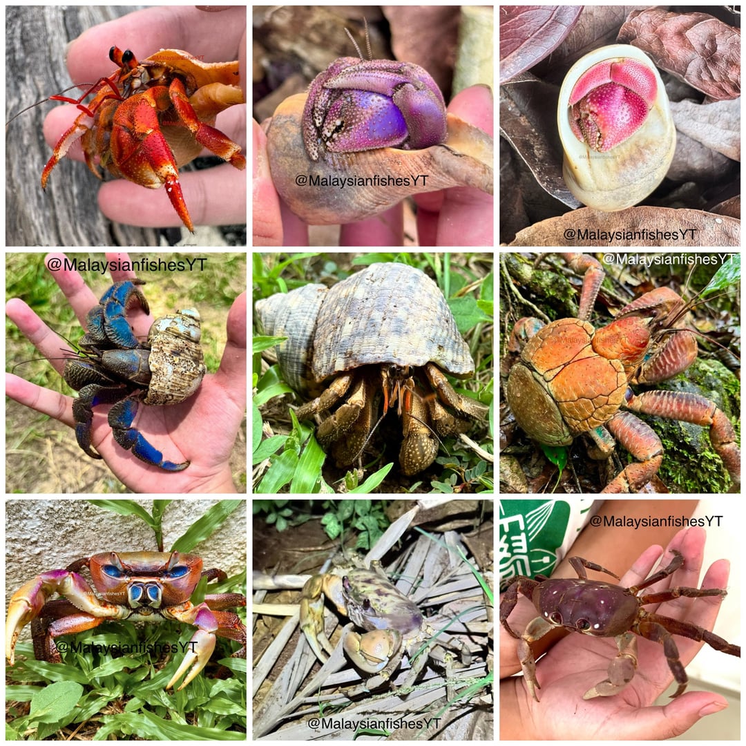Coenobita violascens, C. lila, C. rugosus, C. brevimanus, C. cavipes, Birgus latro, Cardisoma carnifex, Tuerkayana hirtipes, Gecarcoidea humei
