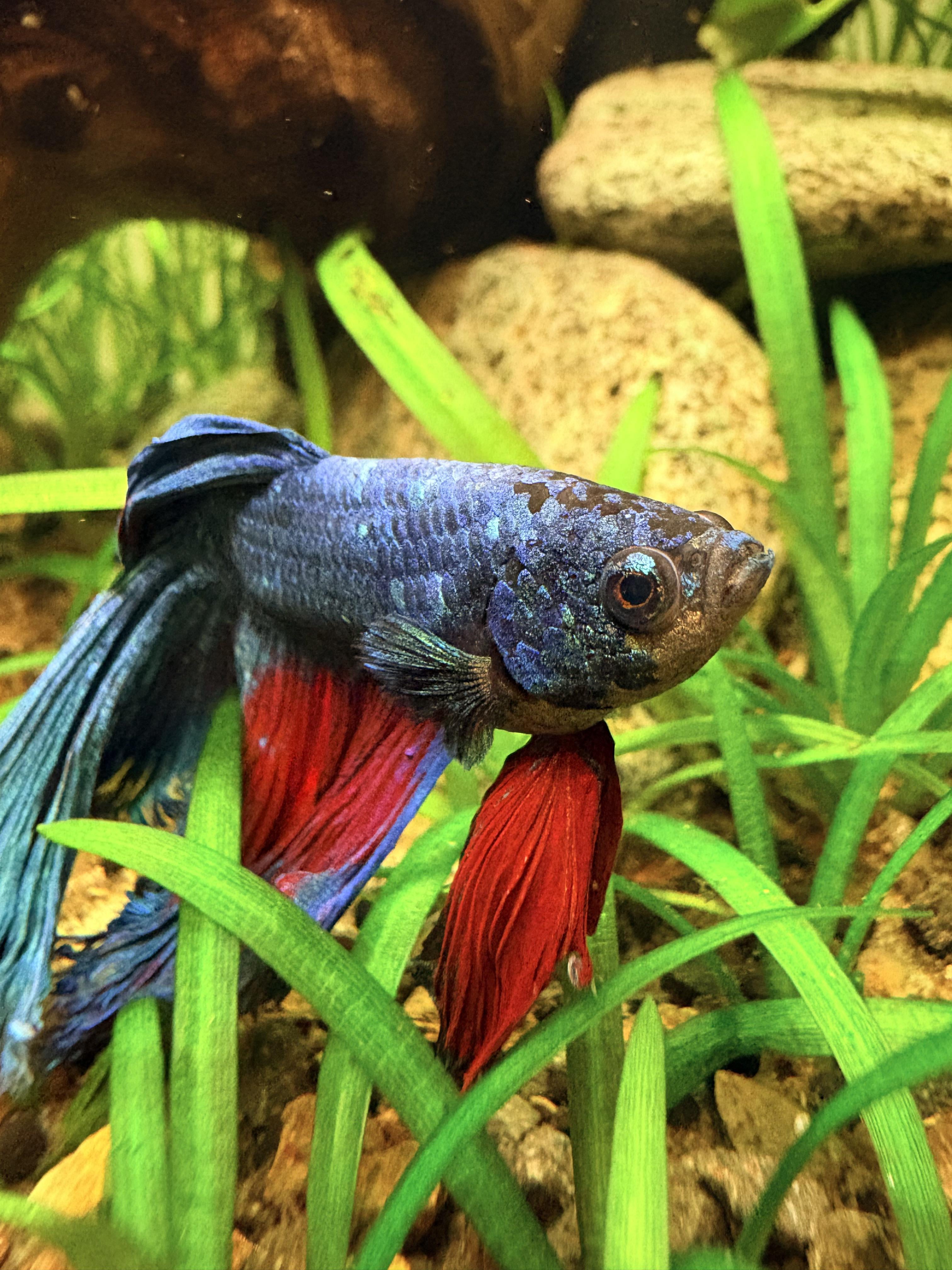 Feel bad for him and his heavy fins but giving him the best life with plenty of plants to rest on/in.