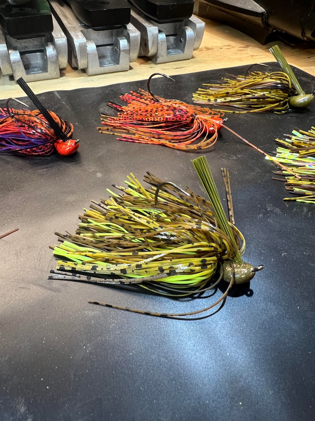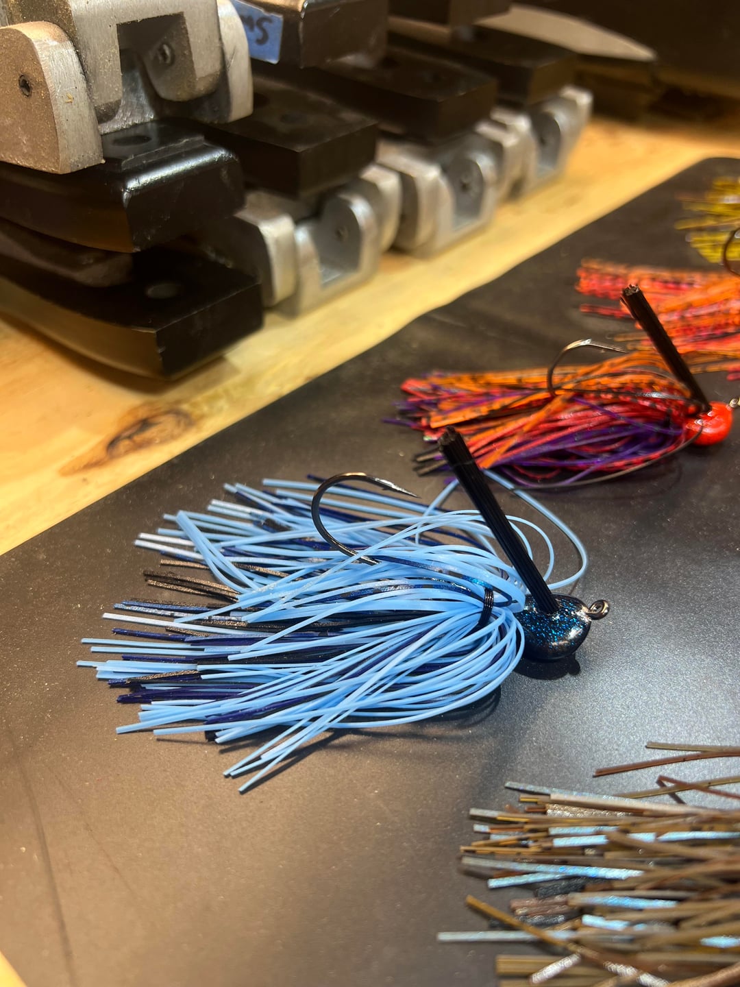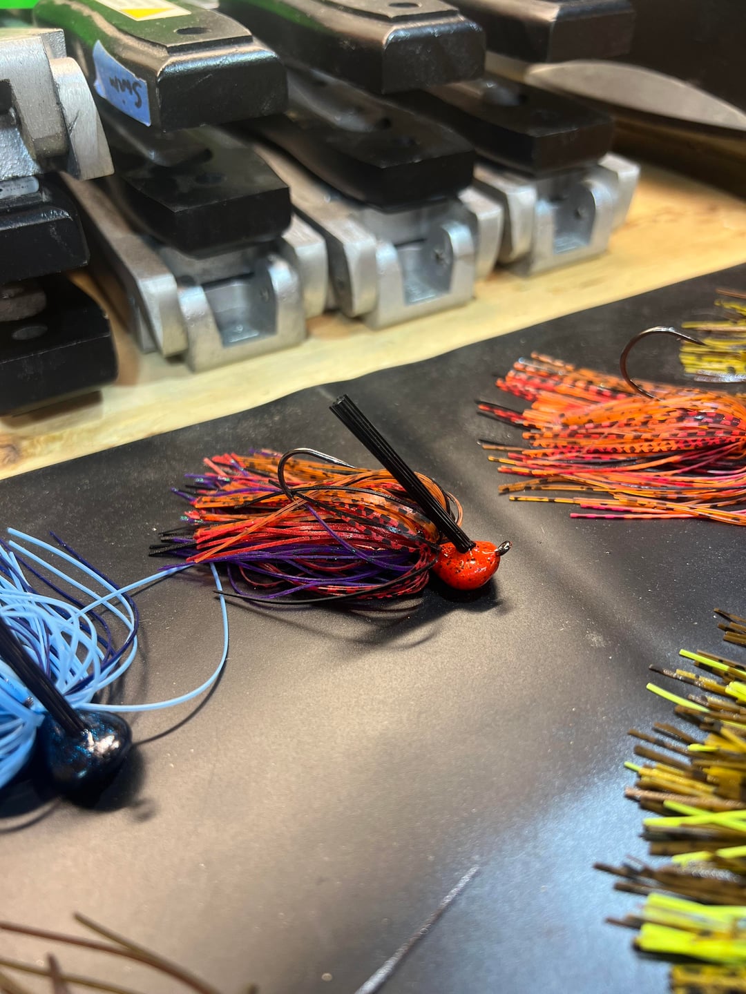 This has been and awesome weekend 1st’s. I’m so glad I’ve made the investment in making my own jigs. From a chunk of lead to a sack of Arkie jigs made by myself with a lil help from my 4yo daughter. I can’t wait to tie many more and even more excited about crackin some big ol bass with these things! Made 4 the first night and 7 the next. The light blue one is what my daughter is calling “Ice in space”. I let her go nuts in the skirt boxes and that’s what she came up with lol. Proud dad moment 😎🎣🐠
