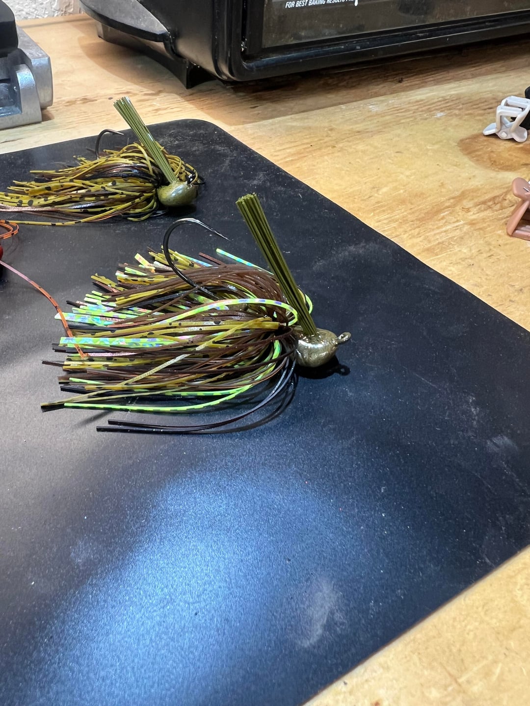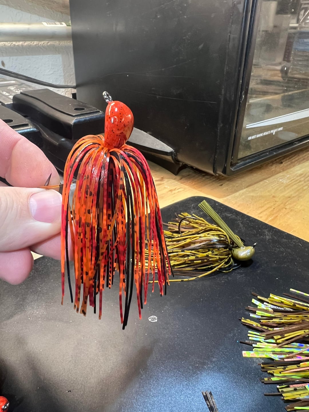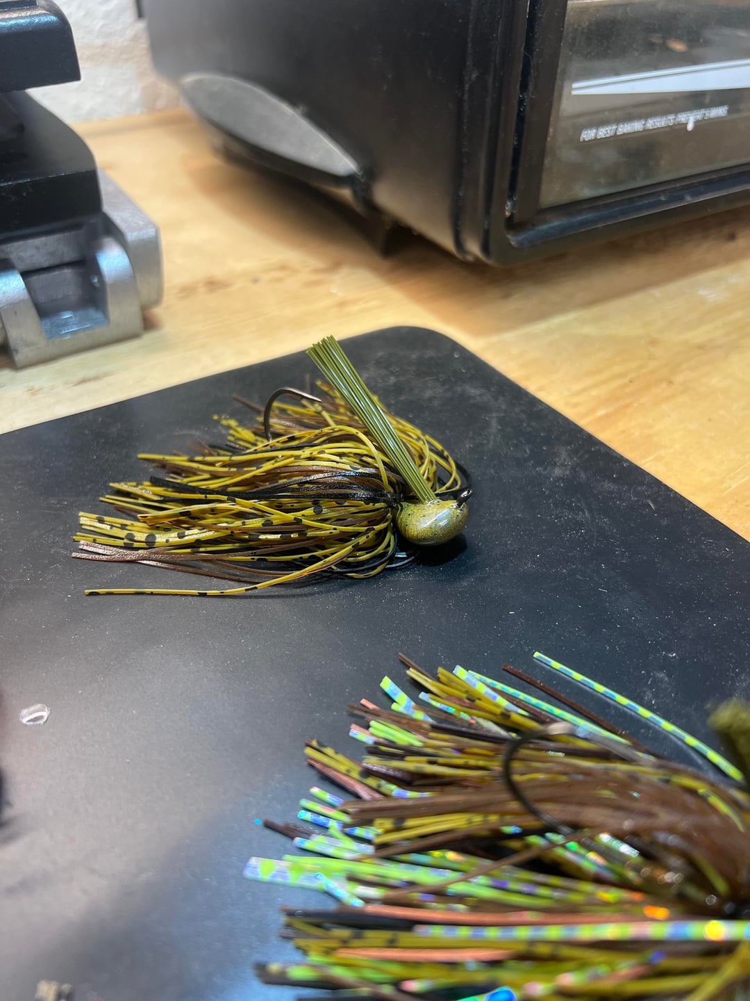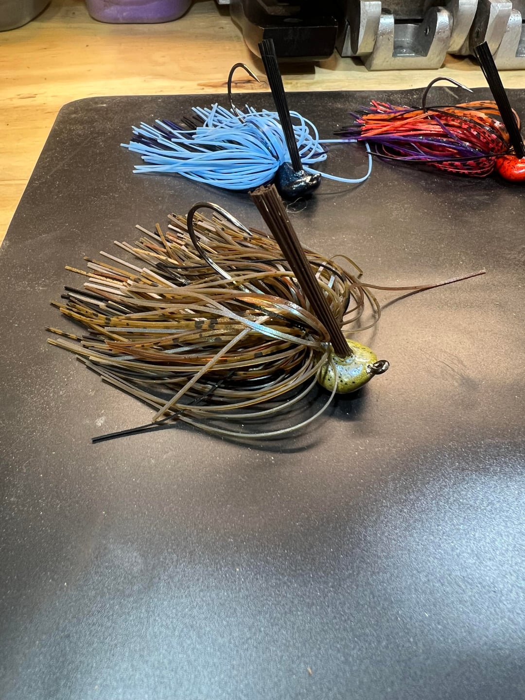 This has been and awesome weekend 1st’s. I’m so glad I’ve made the investment in making my own jigs. From a chunk of lead to a sack of Arkie jigs made by myself with a lil help from my 4yo daughter. I can’t wait to tie many more and even more excited about crackin some big ol bass with these things! Made 4 the first night and 7 the next. The light blue one is what my daughter is calling “Ice in space”. I let her go nuts in the skirt boxes and that’s what she came up with lol. Proud dad moment 😎🎣🐠