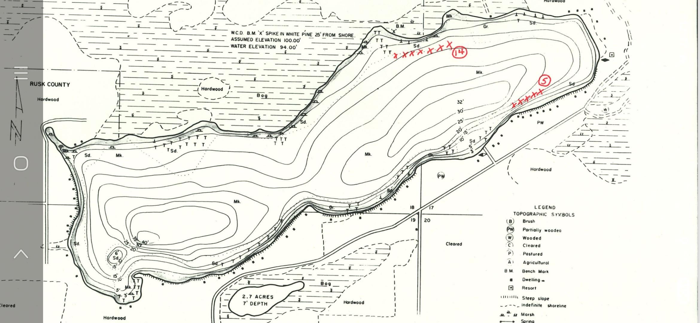 Emailed the rusk county fish biologist here in wi and asked where the fish cribs were on pulaski lake. He sent me this map with the locations. Supposed to be 16" crappie in here. Found the cribs on the bottom, but no crappie in that spot. Point is, ask your local dude and they'll probably help you out