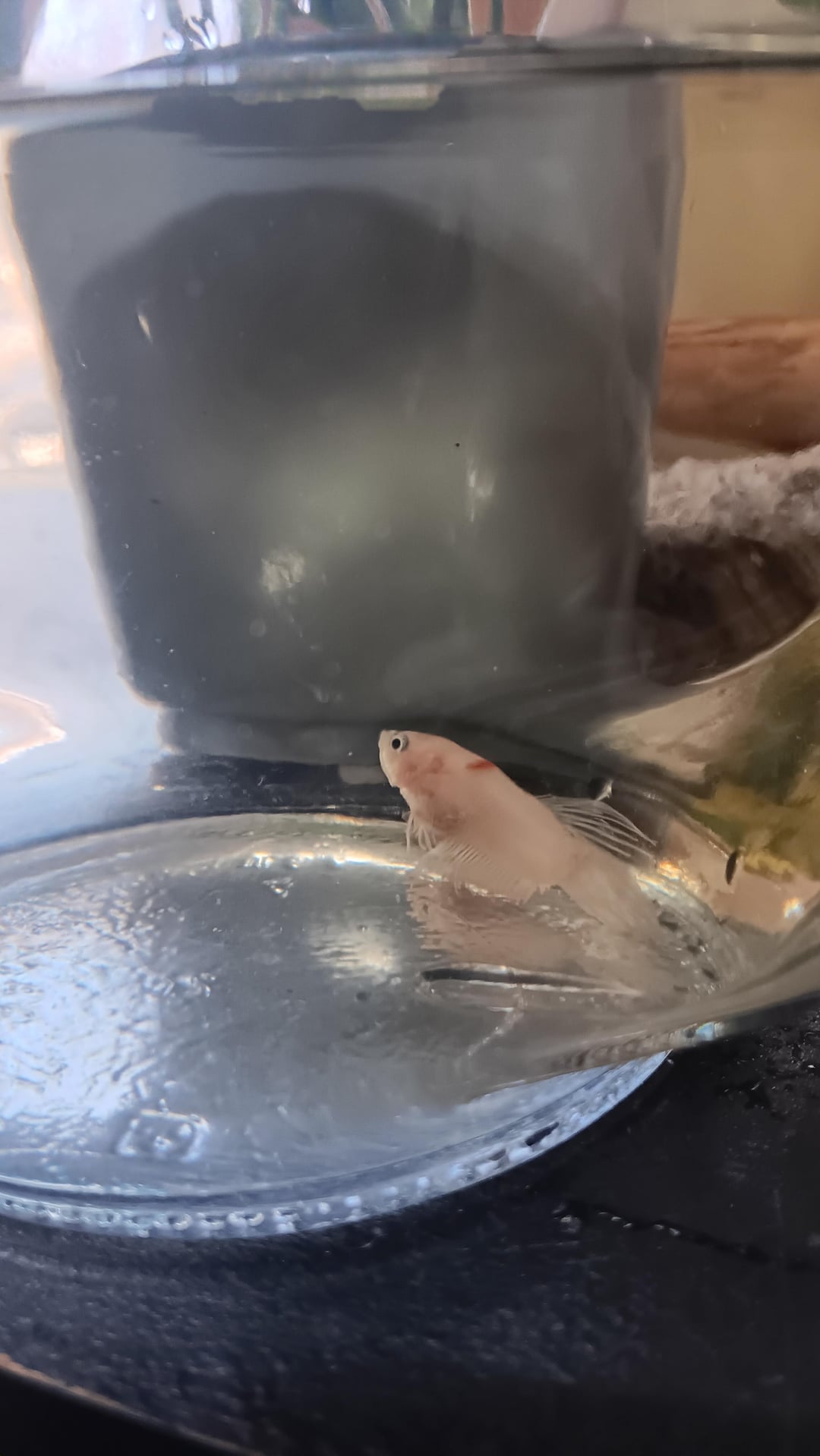 I noticed the last few days my betta has not been swimming around. Overtime I look hes laying on the bottom of husband tank. First picture I'd NOT his tank, its a temporary fish bowl I use when cleaning/checking his water. He can and will swim up to the surface for air then back down to the substrate. He doesn't even stay up at the top to eat, but will eat at the bottom. Can high ph be the cause of his symptoms? If so what are some safe ways to lower the ph? If not then what else could be happening?