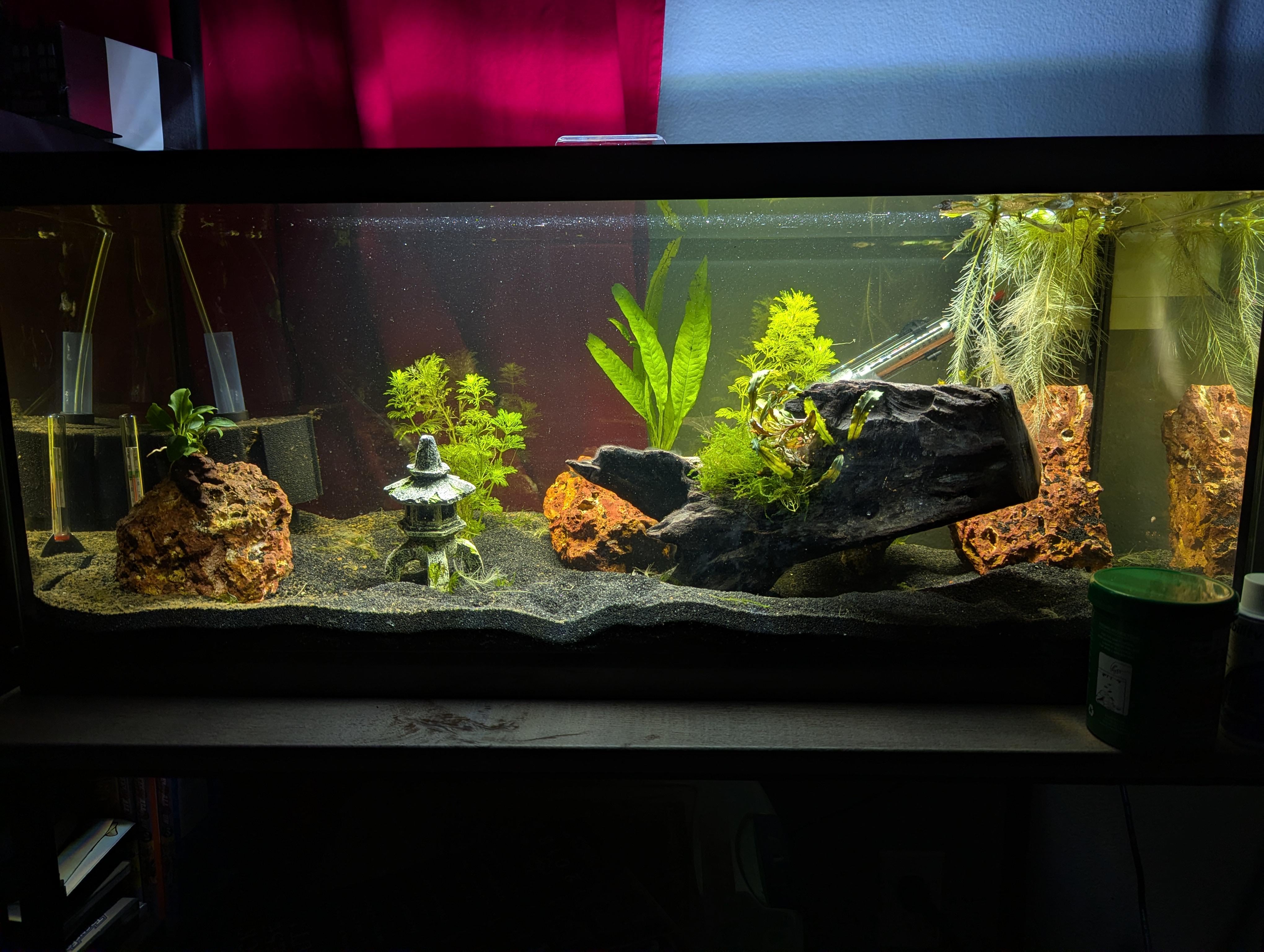 finally got my test kit and was happy to see I'm rich with nitrites and nitrates, but no ammonia. so its going along well, I'll probably wait a week after nitrite hits 0 ppm before adding the precious shrimps. anything I should change/prepare for neocaridina?