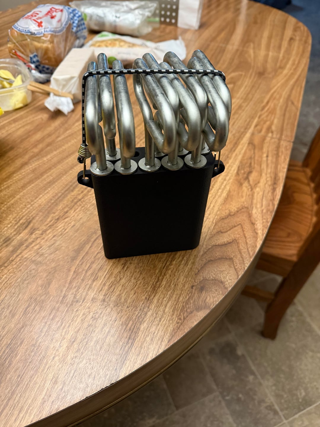 My dad requested one of these ice anchor holders to make it easier to pack up his Eskimo tent after fishing all day. See attached link for 3d print files. If anyone is needing one for less stakes, just ask. https://makerworld.com/models/2238747
