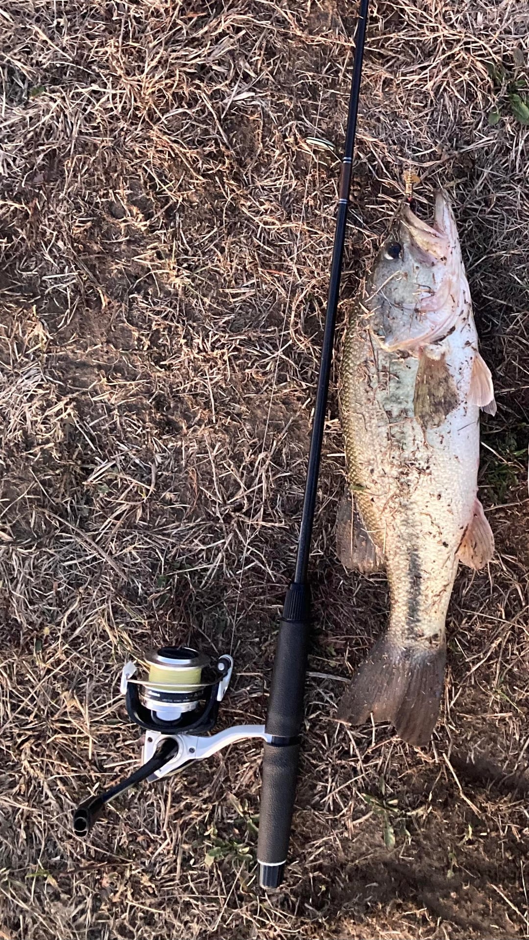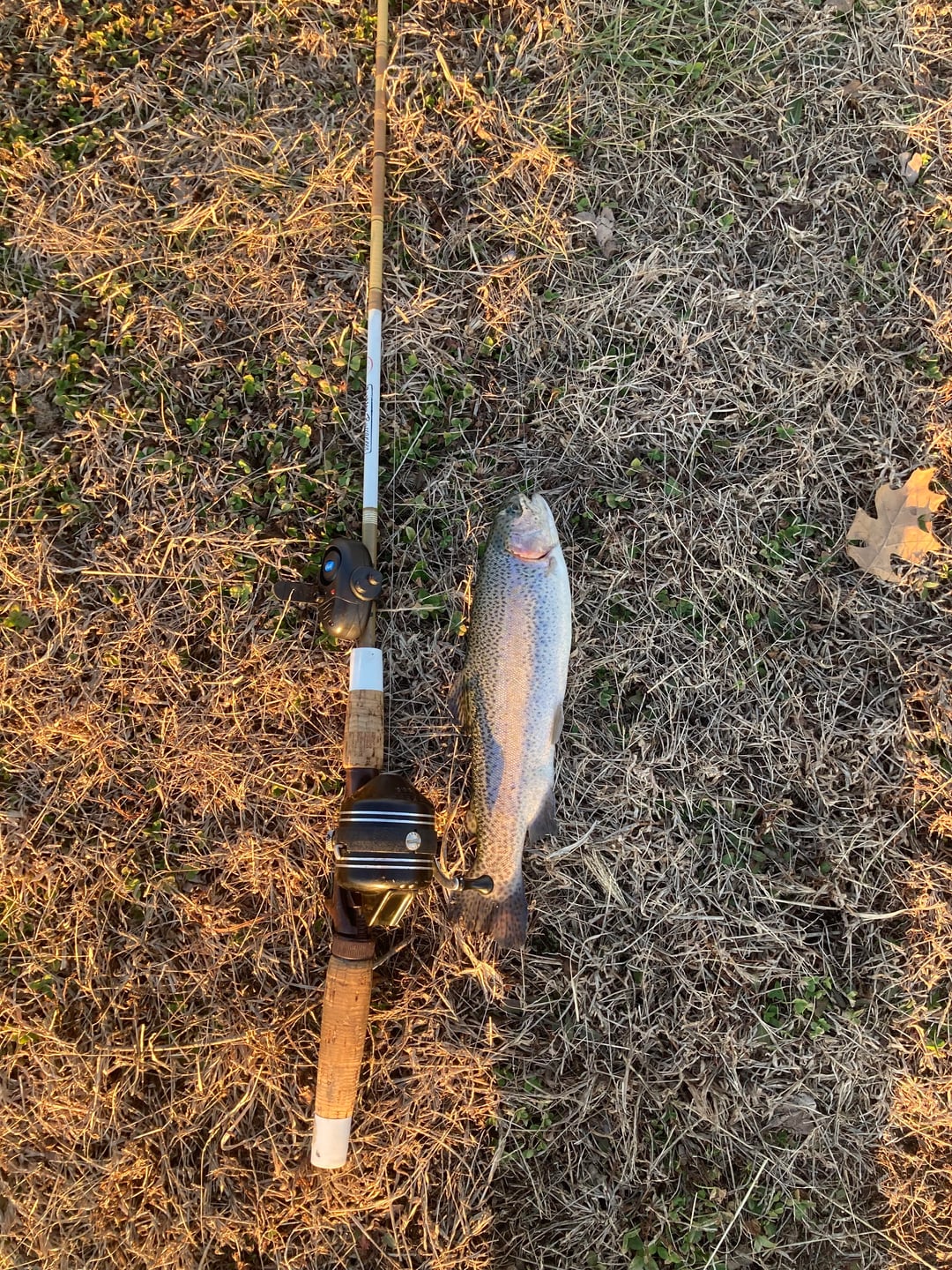Beautiful 53 degree day. Caught two rainbows, and a Big Mouth Bass.