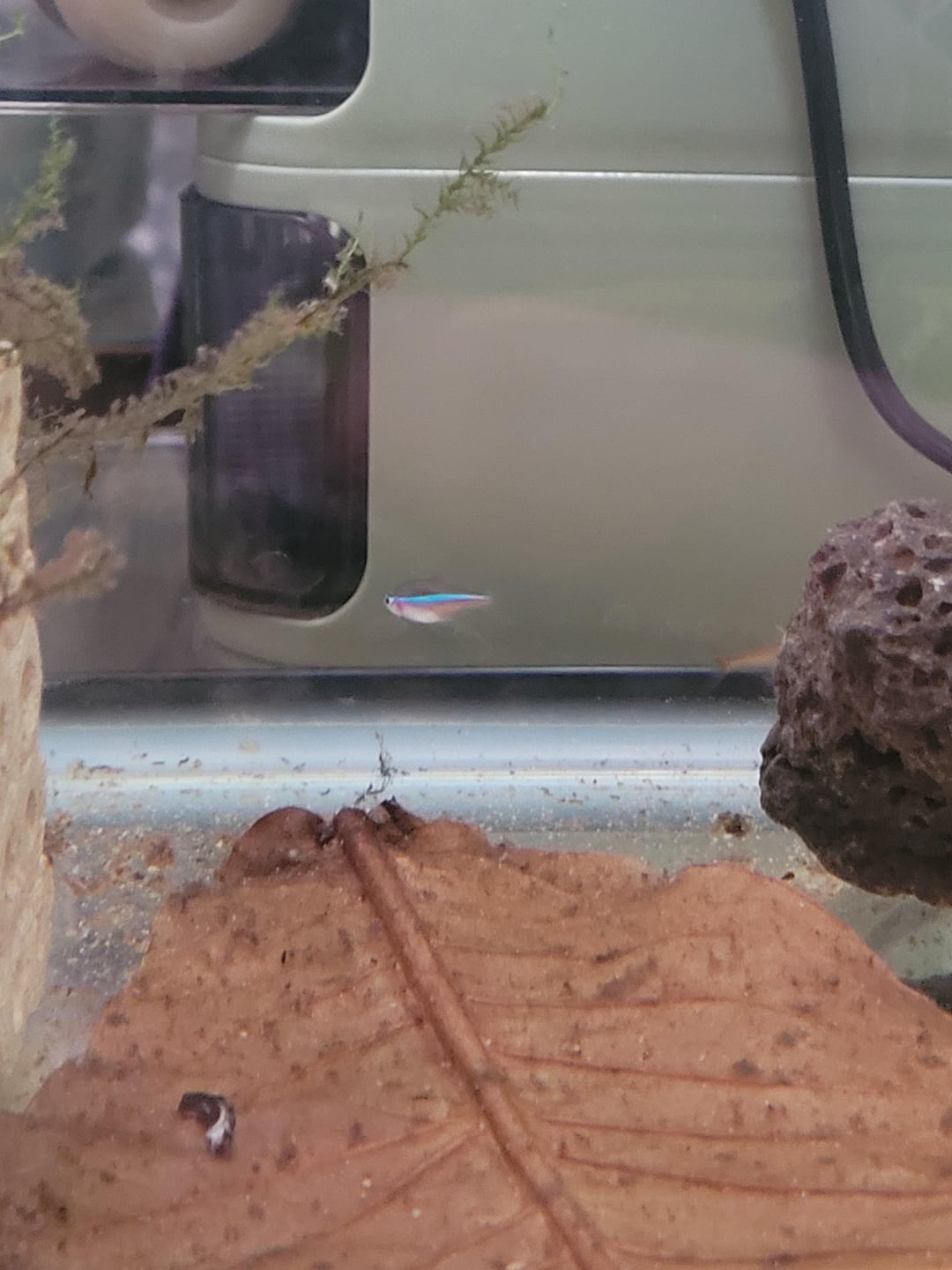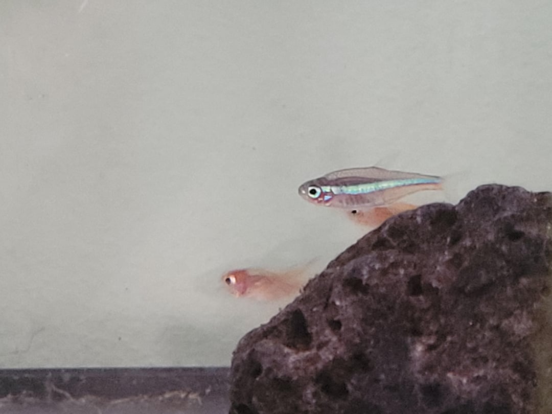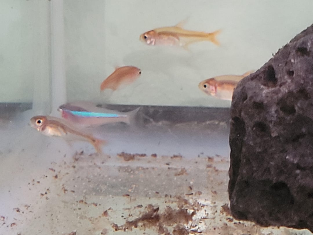 Ordered ember tetras online and recieved a poor little bonus fella. Haven't been here in the quarantine tank long so not fully coloured up, but is he looking like a neon or green neon?