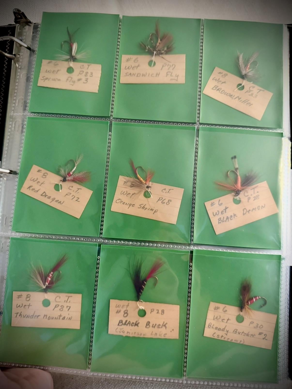 My neighbor passed away and his wife gave me a bag with over 50 flies in it. Each fly had a little card attached to it (I put all of the flies into card protectors in a binder). Each of the cards appears to have a page number on it and my hope is that someone on here can identify the book associated with the page numbers. I can provide pictures of more flies if anyone thinks that would help. Thanks!