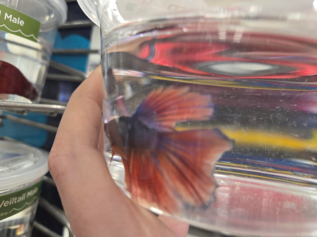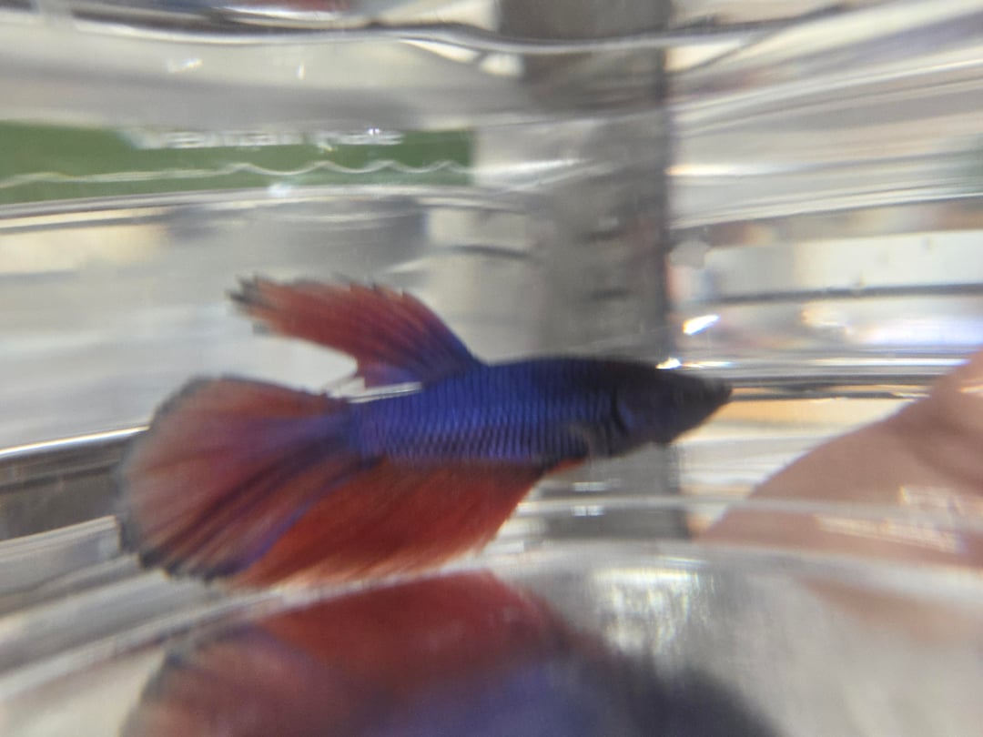 I saw this gorgeous boy at Petco who I so desperately want but I absolutely am NOT equipped for him right now. I have one Betta already and 2 20g tanks, one of which is populated with guppies and the other with my other Betta 🫠I have a 20 long and a 5 gallon I could easily get heaters and filters for but nowhere really to put them. His colors are so gorgeous, I need him so badly aahhh. I've seen other Bettas who are purple and red but never one that's purple and orange, heelp!!! 😂ðŸ˜