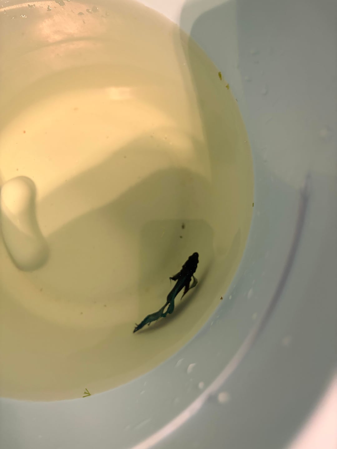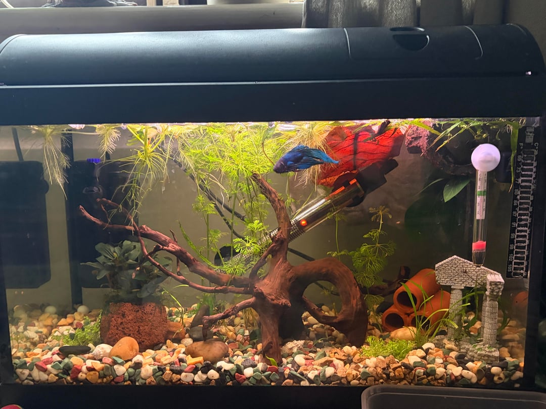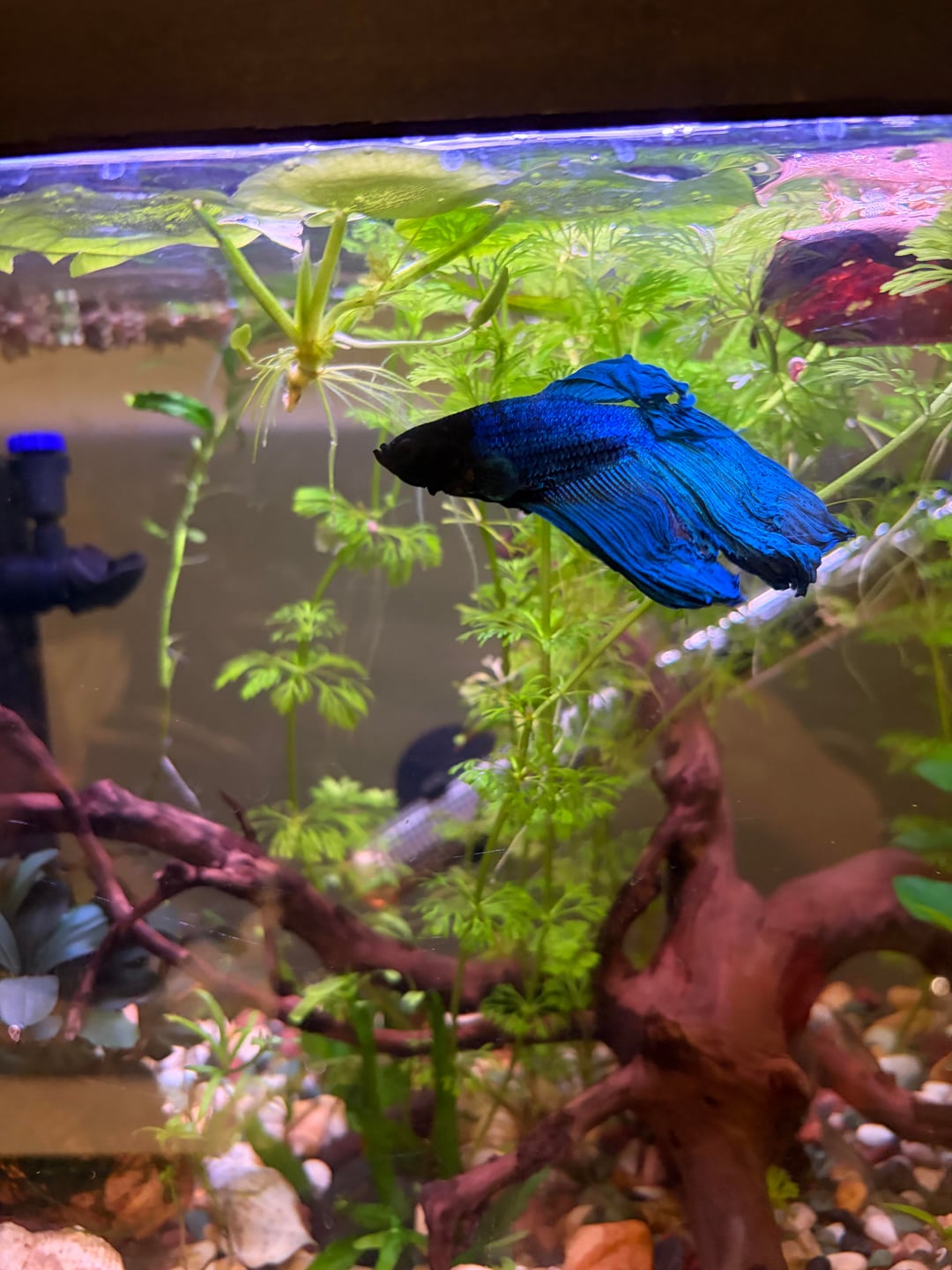 Initially I thought the issue was an internal parasite or wasting disease, as he’s struggled to gain weight despite being fed a mix of Fluval Bug Bites, brine shrimp and bloodworms (the latter as a treat). I’ve also only ever seen him poo once, which I know is wild. I watch him a lot because I work from home, so he’s my work buddy.