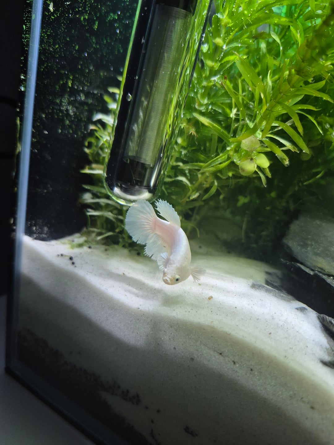 The new fish has her own tank now. I will do a better scape at one point but for now it is all that I have. Spent like 170 Euro in the petshop and got most of the basic stuff. Fish is chill now that she is no longer getting bullied.