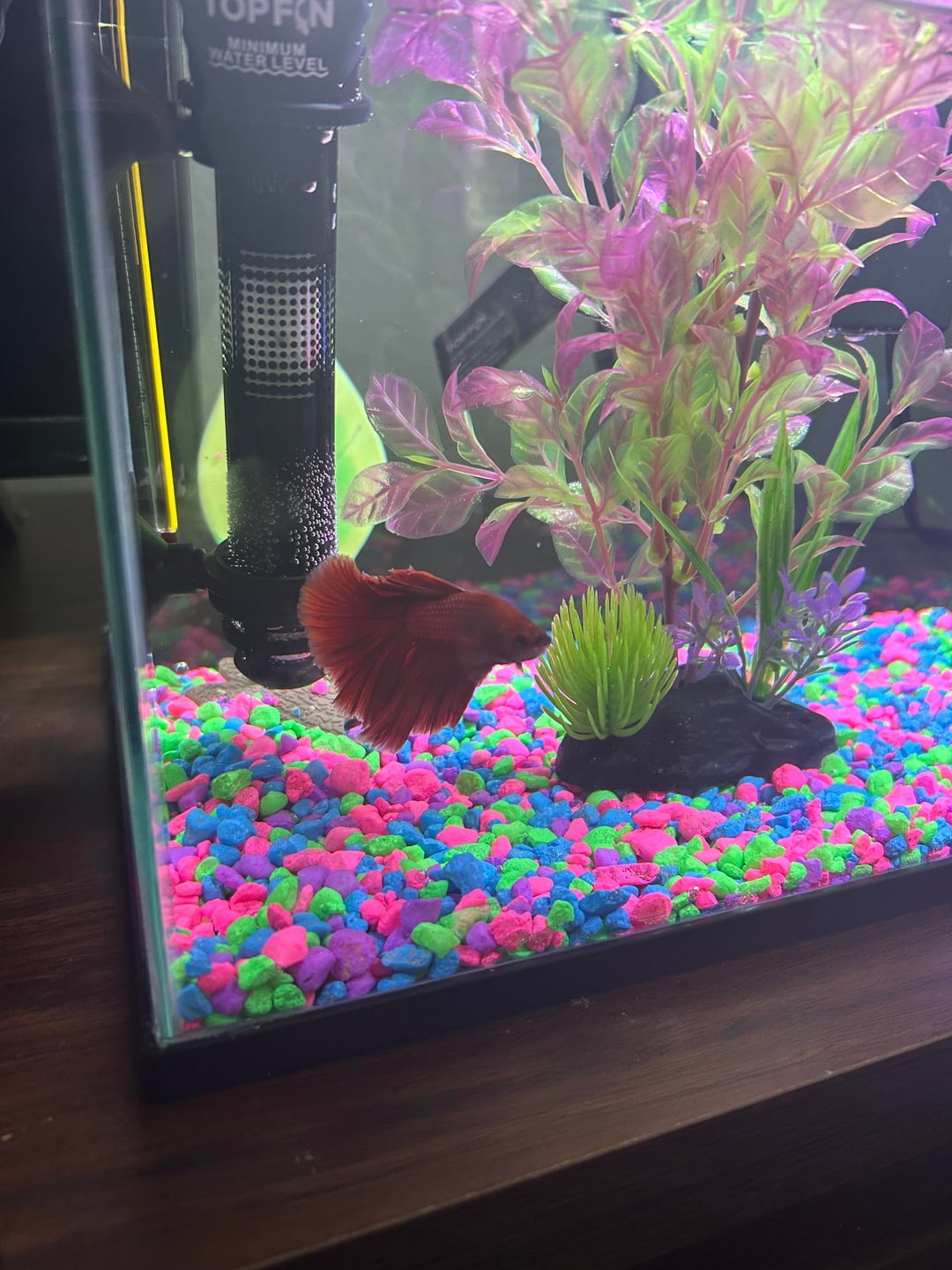 Well the tank that was ordered will not be here until next week so he’s currently in this pet smart betta starter kit tank and I fear it’s stressing him out.