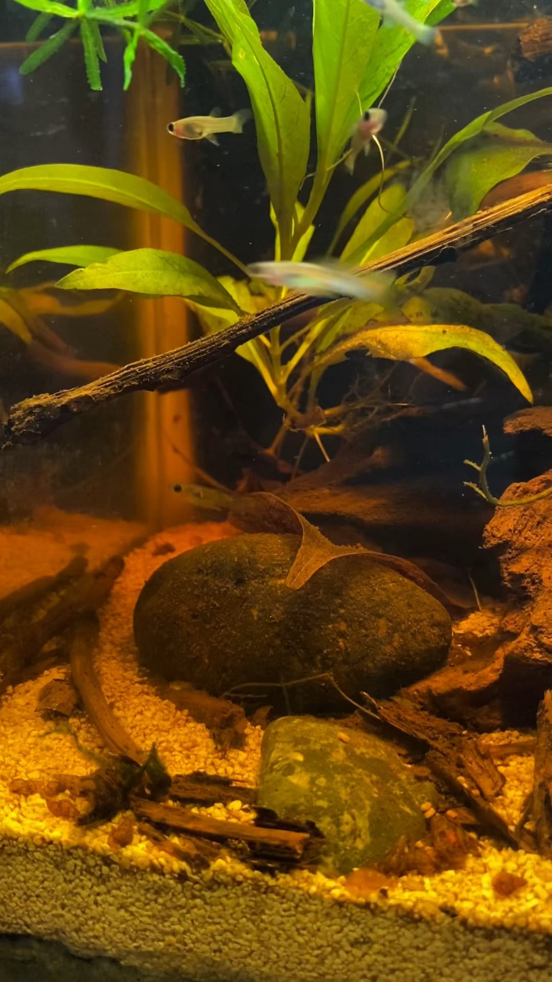 Wild type guppies feasting on sinking pellets