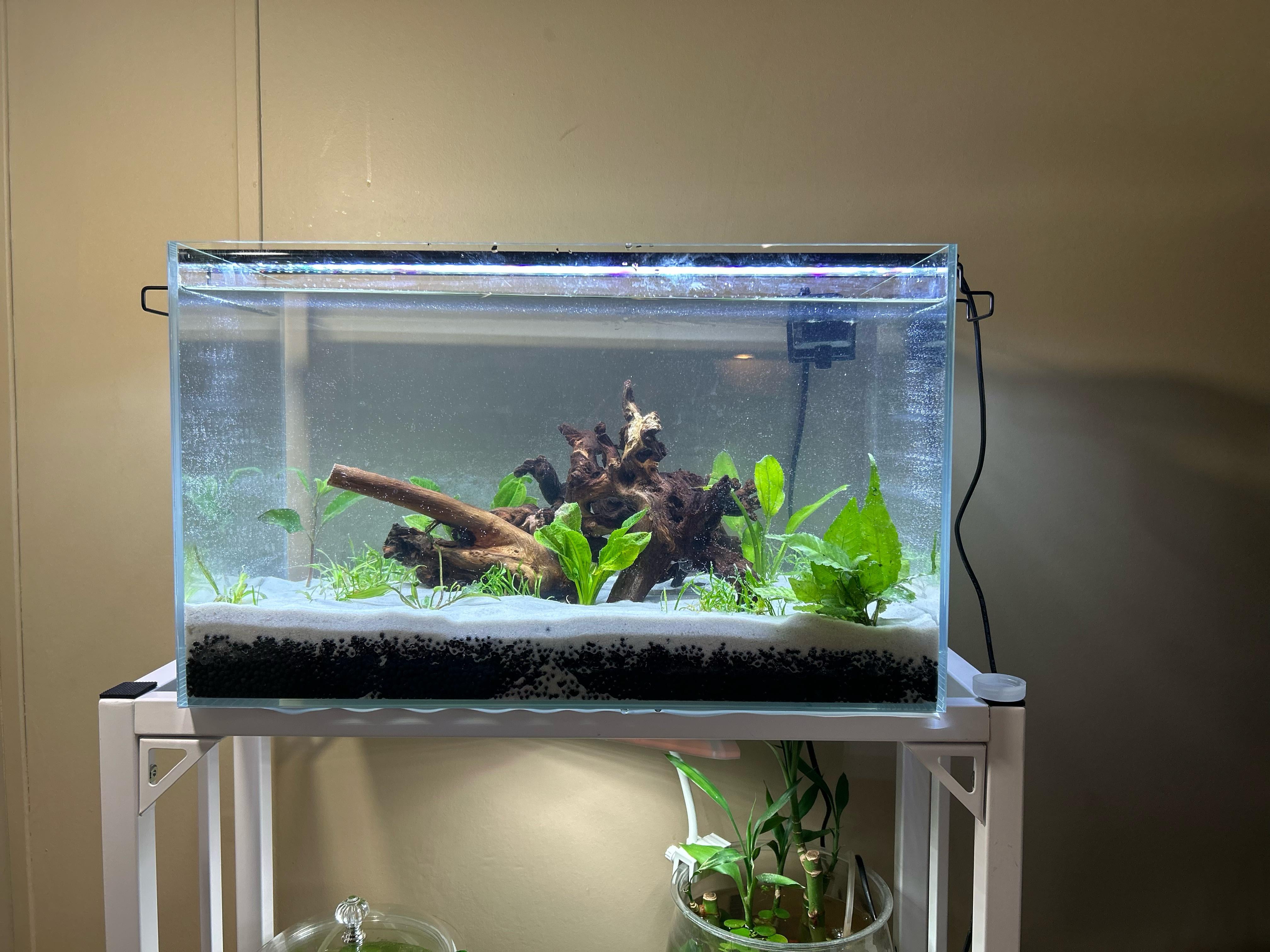 I have some duckweed and another floater that I can’t remember the name of but it is big and hearty! I know I need some more floating plants but this is the start of my betta tangy’s new home
