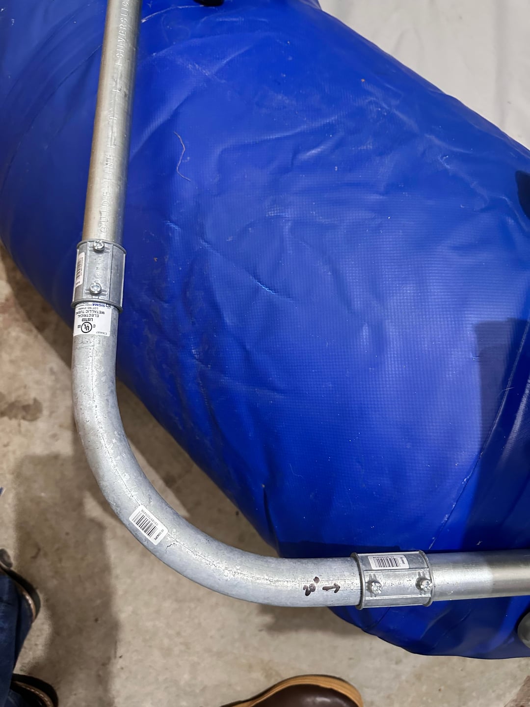 In July of 2024, I snagged the deal of my lifetime – a brand new STAR 141 Raft for $500. In looking at frames, I couldn’t wrap my head around the cost of $1600-$1800 for a fishing frame (not including oars, 3rd seat, straps, etc.) I kinda viewed it as more money spent on the raft, less money spent on other gear. The limited info that was online mentioned EMT conduit being a substitute for traditional frame, so that’s the route I took. I’m posting this to hopefully help someone else out who has thought of going DIY for their raft frame and like myself, don’t have access or friends with a welder.