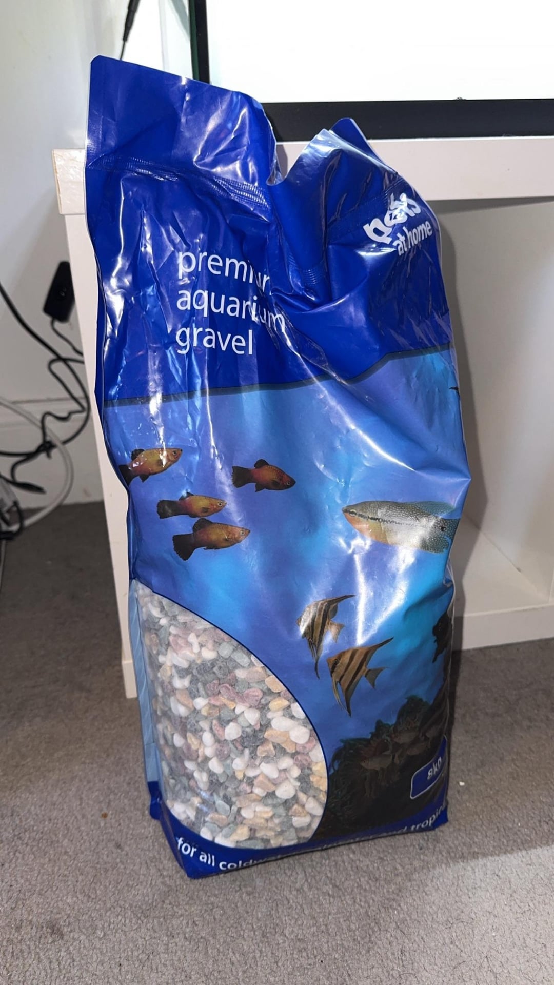 7. Get another fish tank stand. That one looks like an Ikea and they’re not built to support the kind of weight that tank will carry, nor the water eventually spilling onto it.