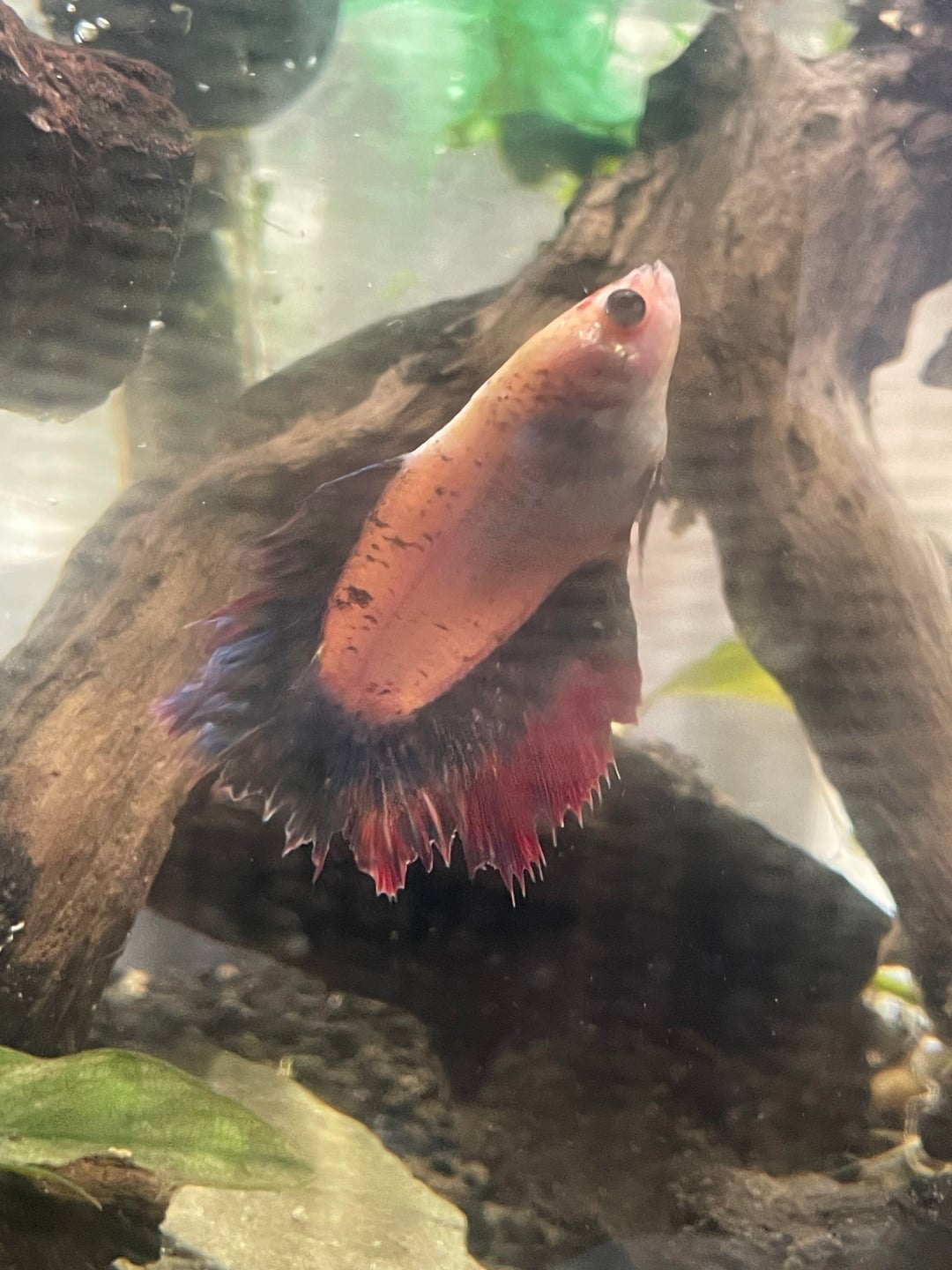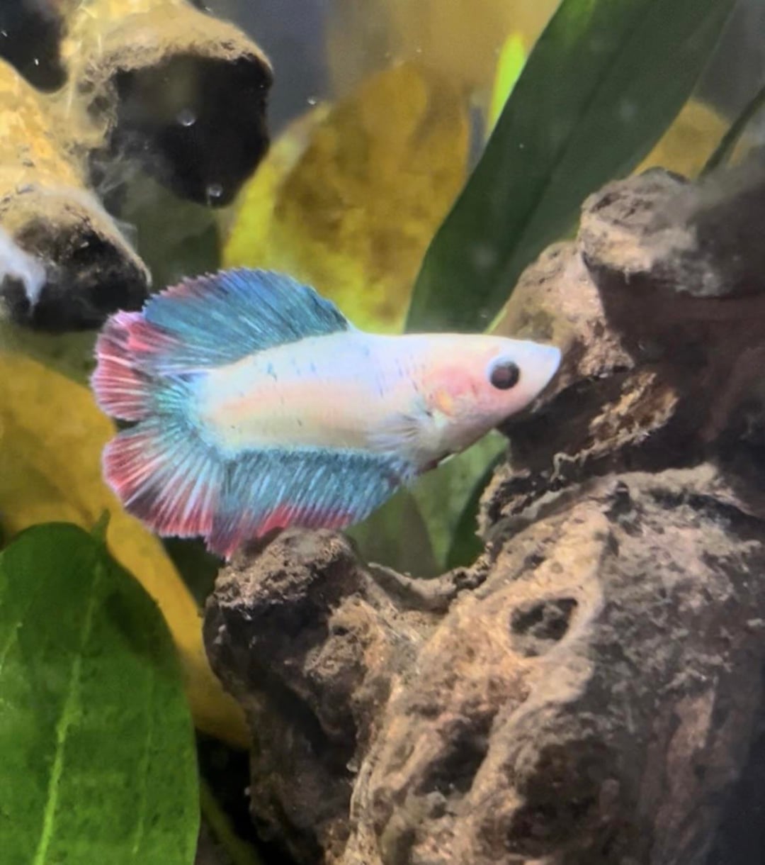 hi! i got my betta in june and this was her a few months ago. i left for a week and my partner took care of her, her fins seem definitely tattered.. is it possibly fin rot or fin biting? https://www.reddit.com/gallery/1qeksr4 Posted by AverageFickle