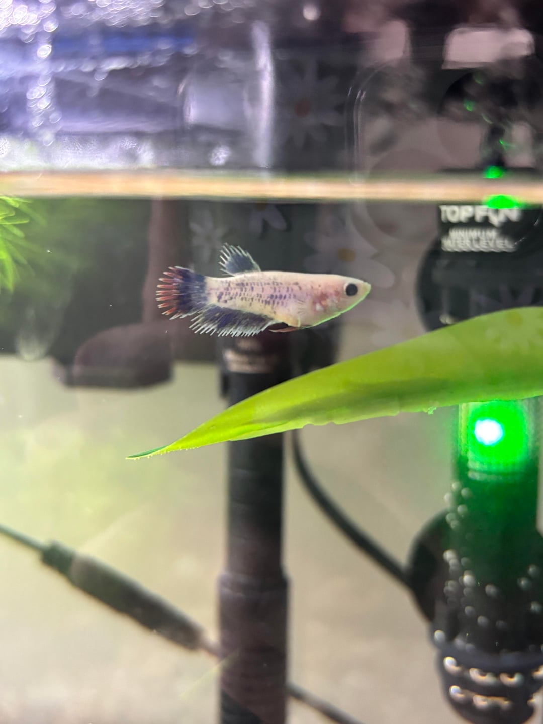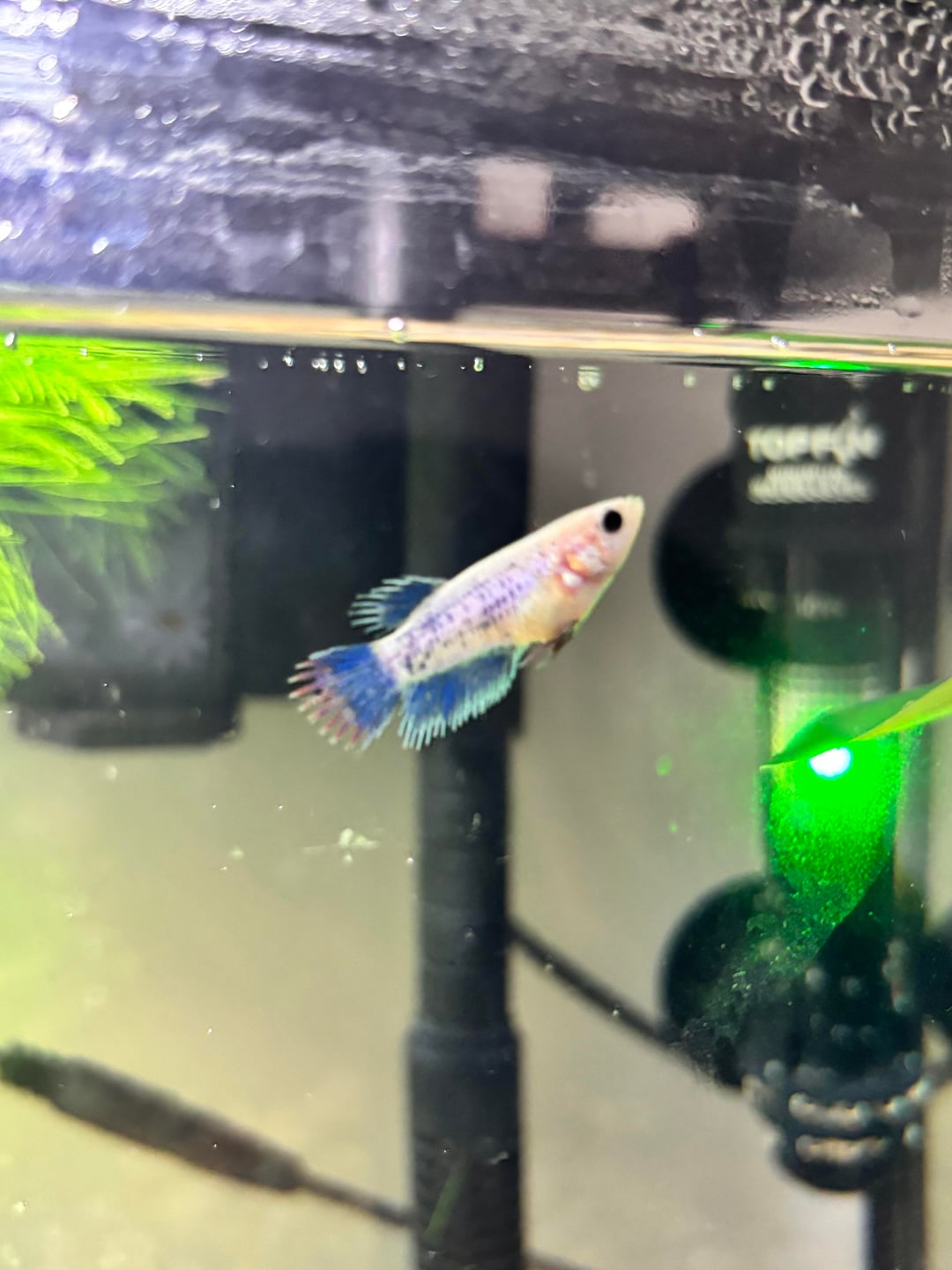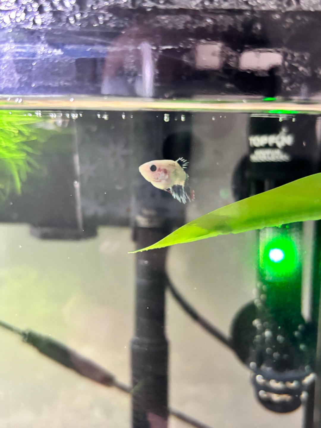 Also just wanted to point out that it looks like your water heater is a tiny bit above water level. Please make sure to have it submerged completely as instructed, or they can seriously malfunction and potentially explode. You can move it down the glass a little bit, or it also looks like you have space to add a bit more water which should cover it 🙂