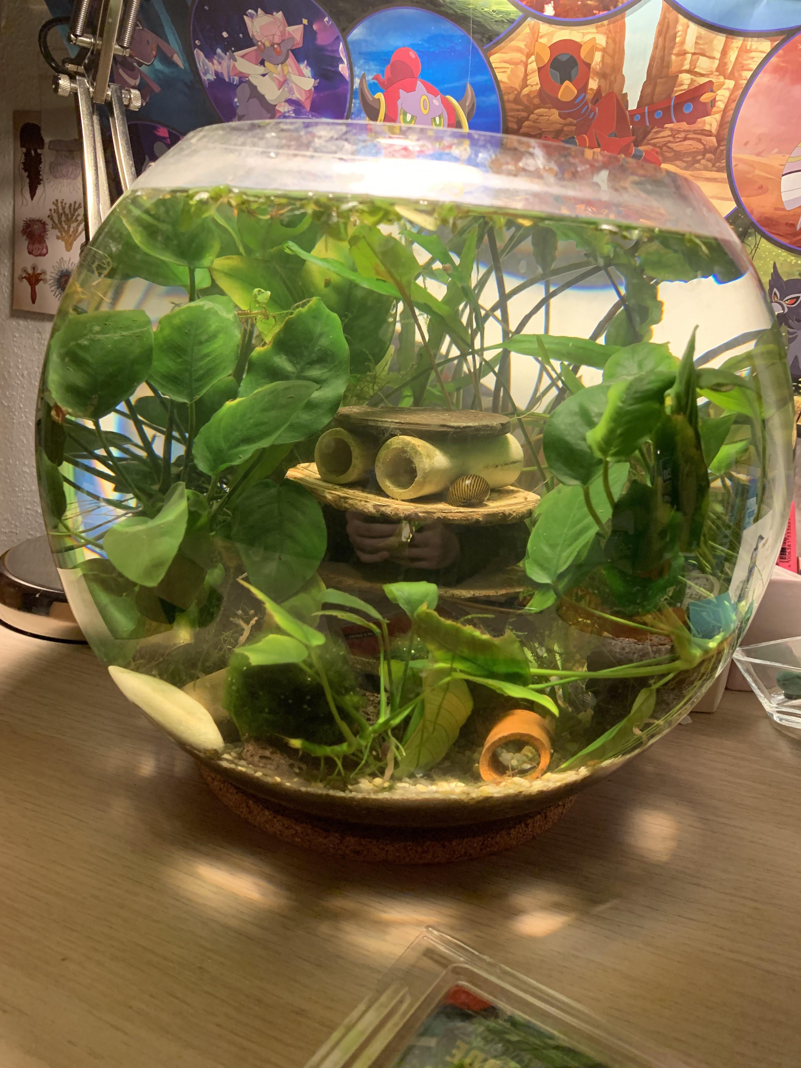 there are obviously no fish in here, nor will there ever be any in there, just incase someones wondering. My moms like really good with aquarium stuff, she’s been doing it longer than i’ve been alive. Anyway i love it so much, seeing the little snails is so cute
