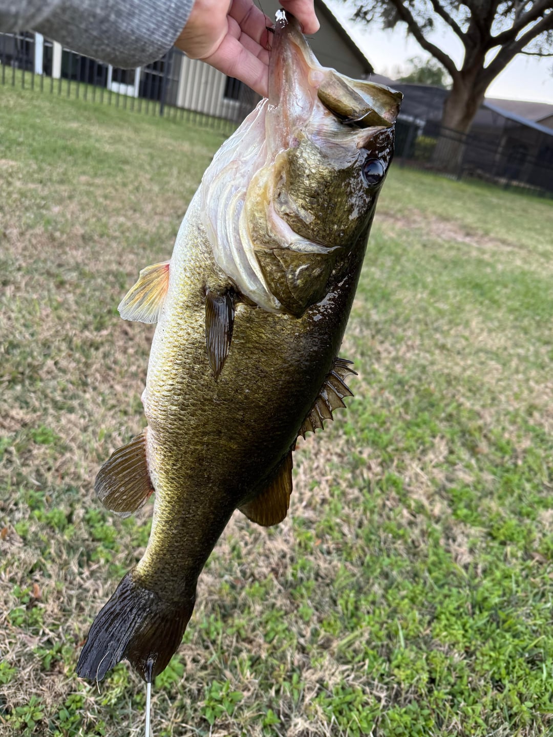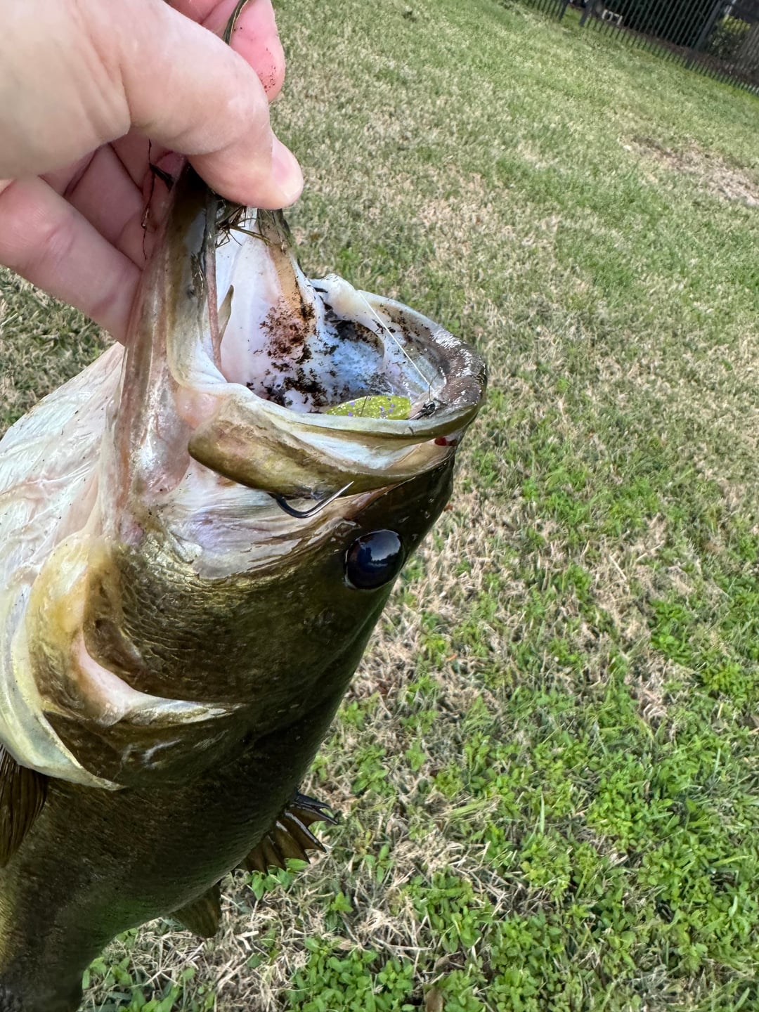 Solid large mouth bass! Keep practicing! Got some nice size fish back there