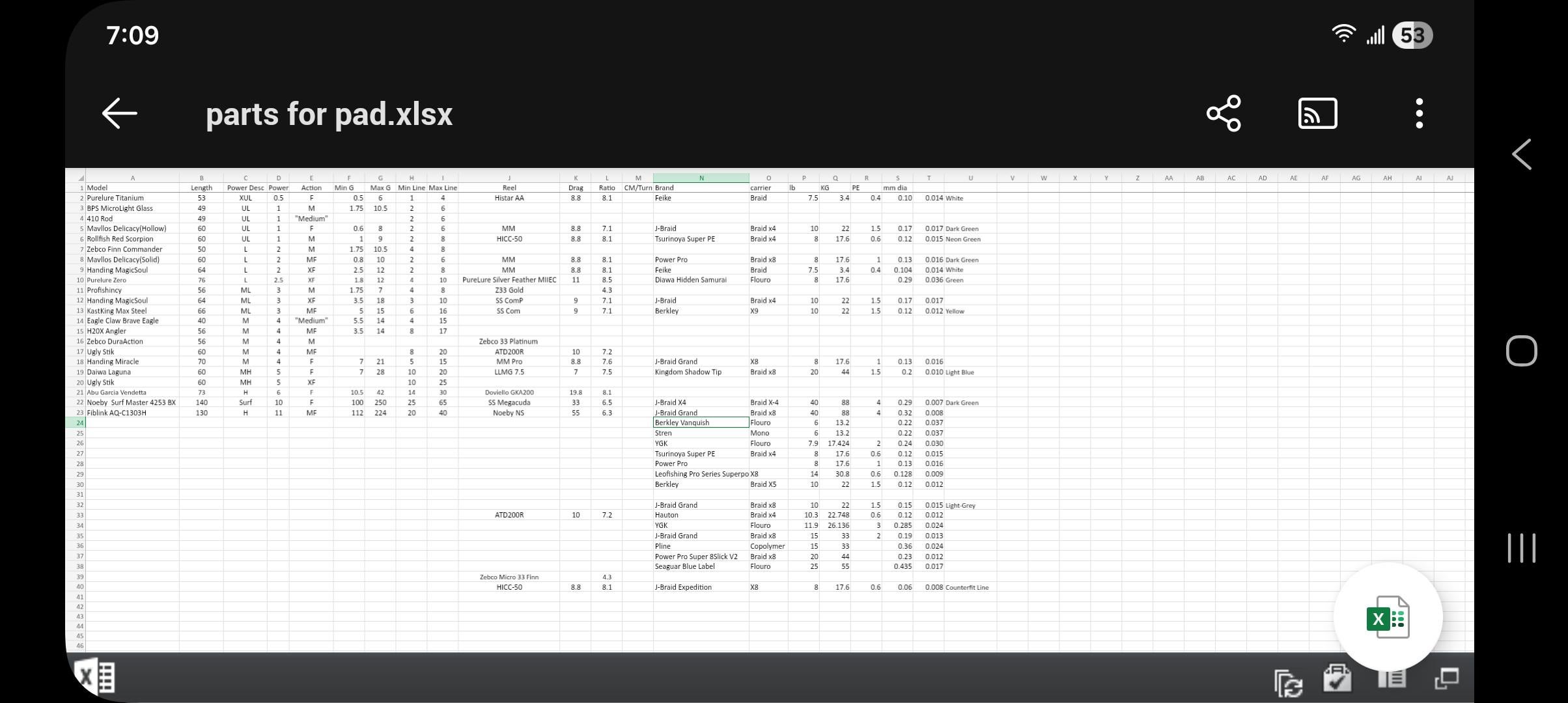 Does anyone else need out and organize their tackle using spreadsheets?