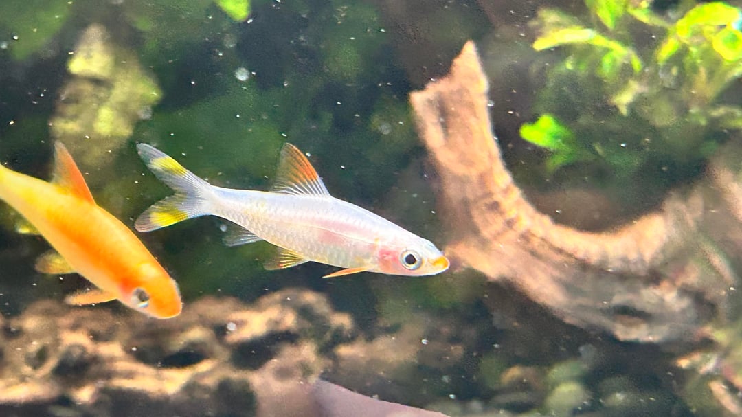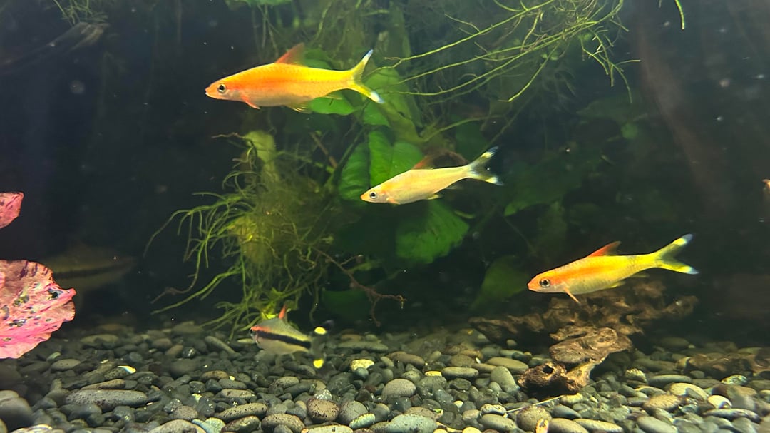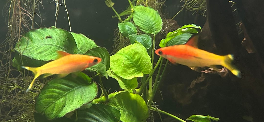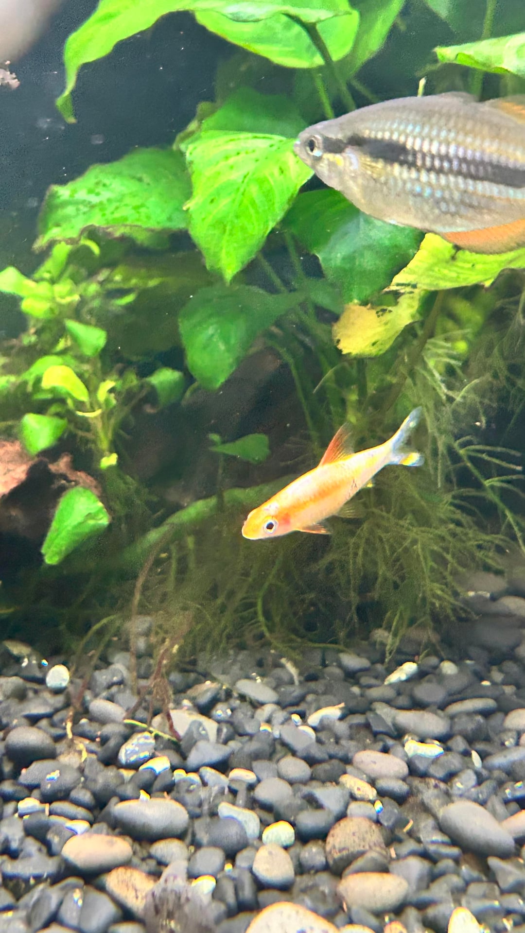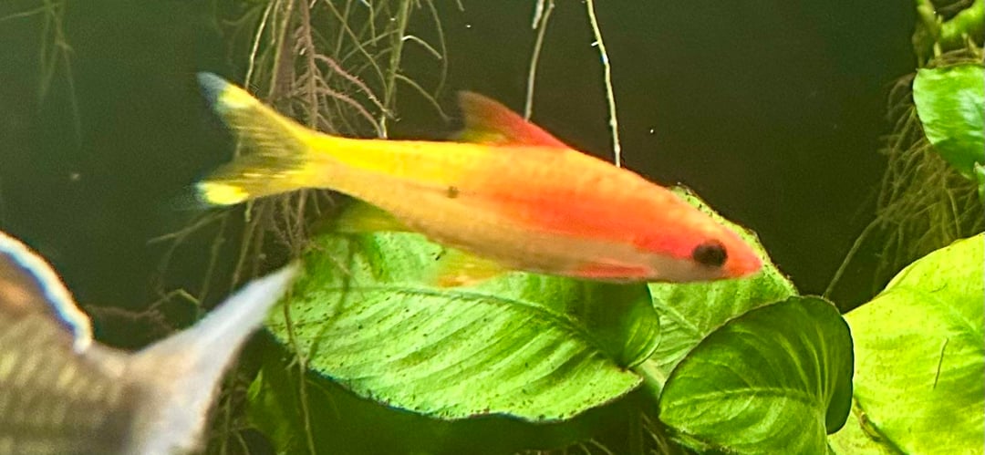 I’ve had Denison barbs with my Rainbowfish for some time, but whenever on the hunt for the Golden variants, the prices were often double that of the standard variant. I happened across some young Denisons in a local shop, and “took a punt” on three awkward looking / discoloured fish in the hope that they would grow and if nothing else would be “oddballs” in the tank. Just look at how they have changed, and the colours are now starting to pop, and they really stand out in a planted tank.